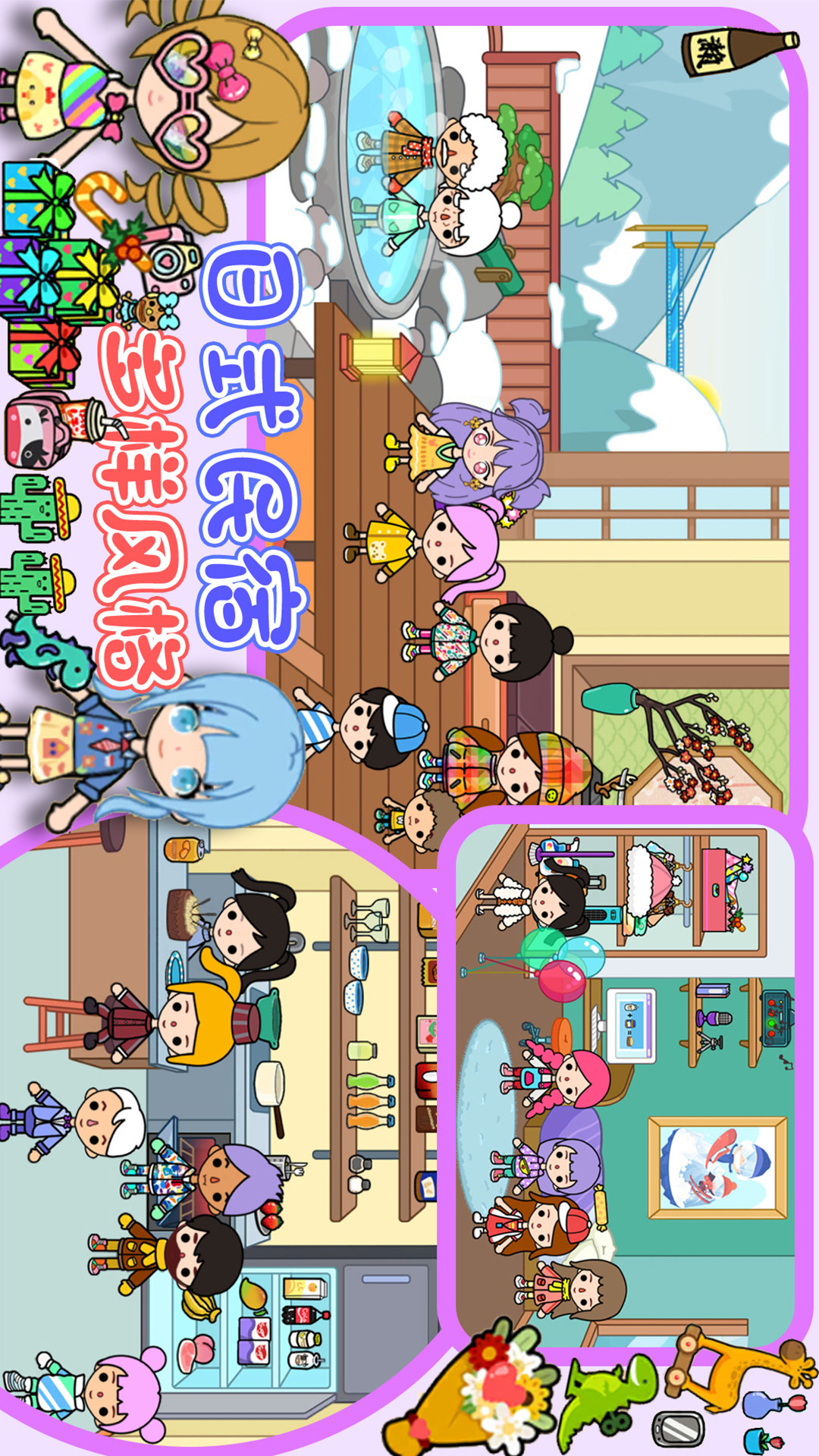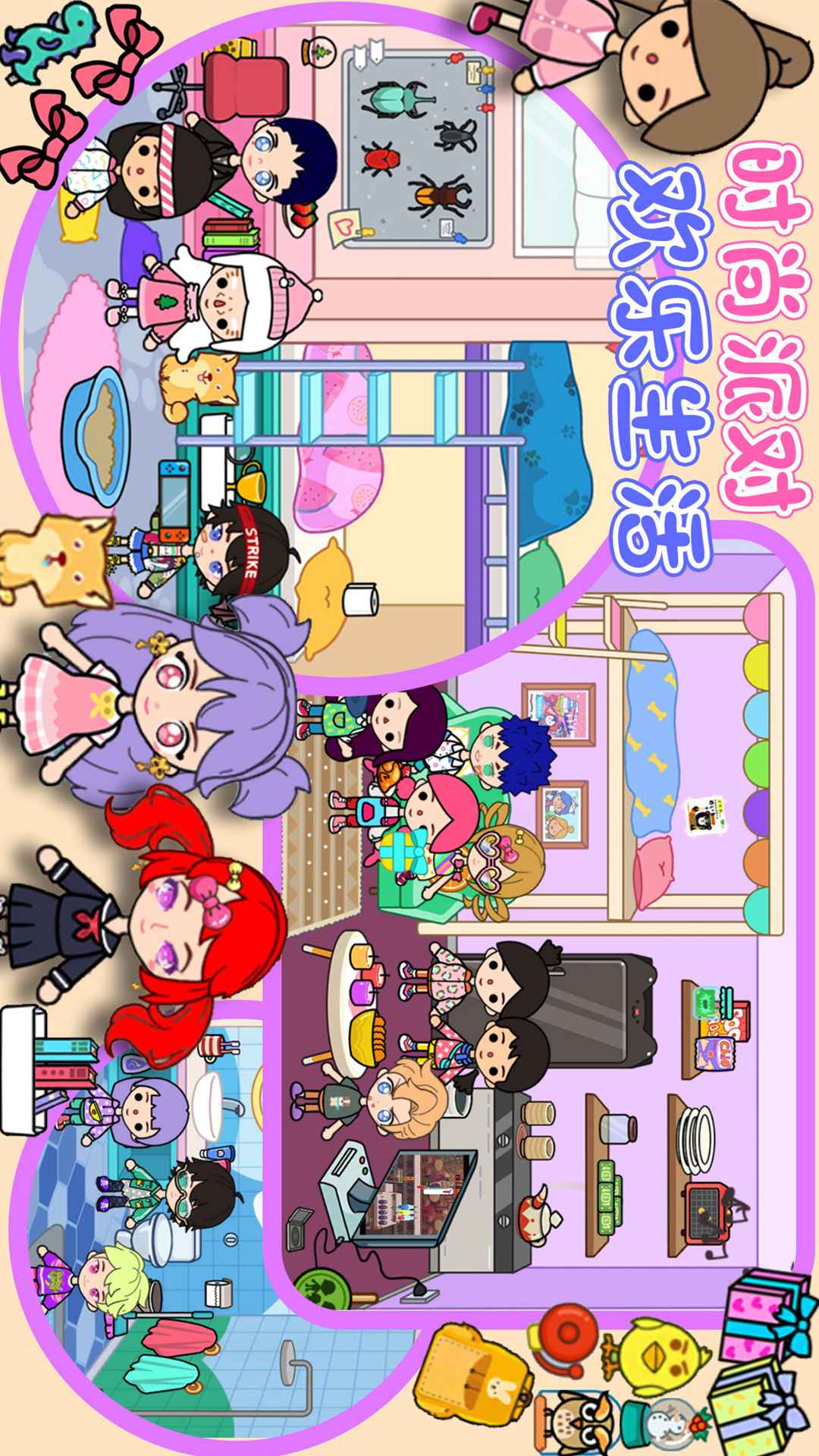 你是否想体验城堡里梦幻生活?现在可以在完美公主城堡实现它!和美丽的小公主和勇敢的小王子一起探索城堡的每一个角落!这里没有任何规则的限制,故事的发展全凭你来安排!发挥你的想象力和创造力,体验模拟过家家和无限快乐!