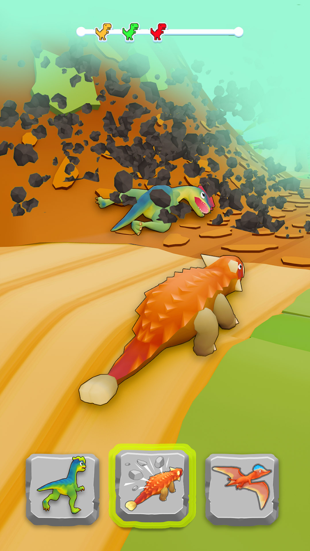 欢迎来到变形恐龙的世界,在这里你需要在恐龙跑酷之间进行切换,以克服障碍并冲向终点线以赢得竞赛。 在这场恐龙竞赛中,当你变换形状以穿越各种障碍时,你的敏捷性将受到考验。 错过一个节点,你就会重新开始。 这不仅关乎手速。 这是关于头脑的比拼。 快来加入变形恐龙赛跑吧!