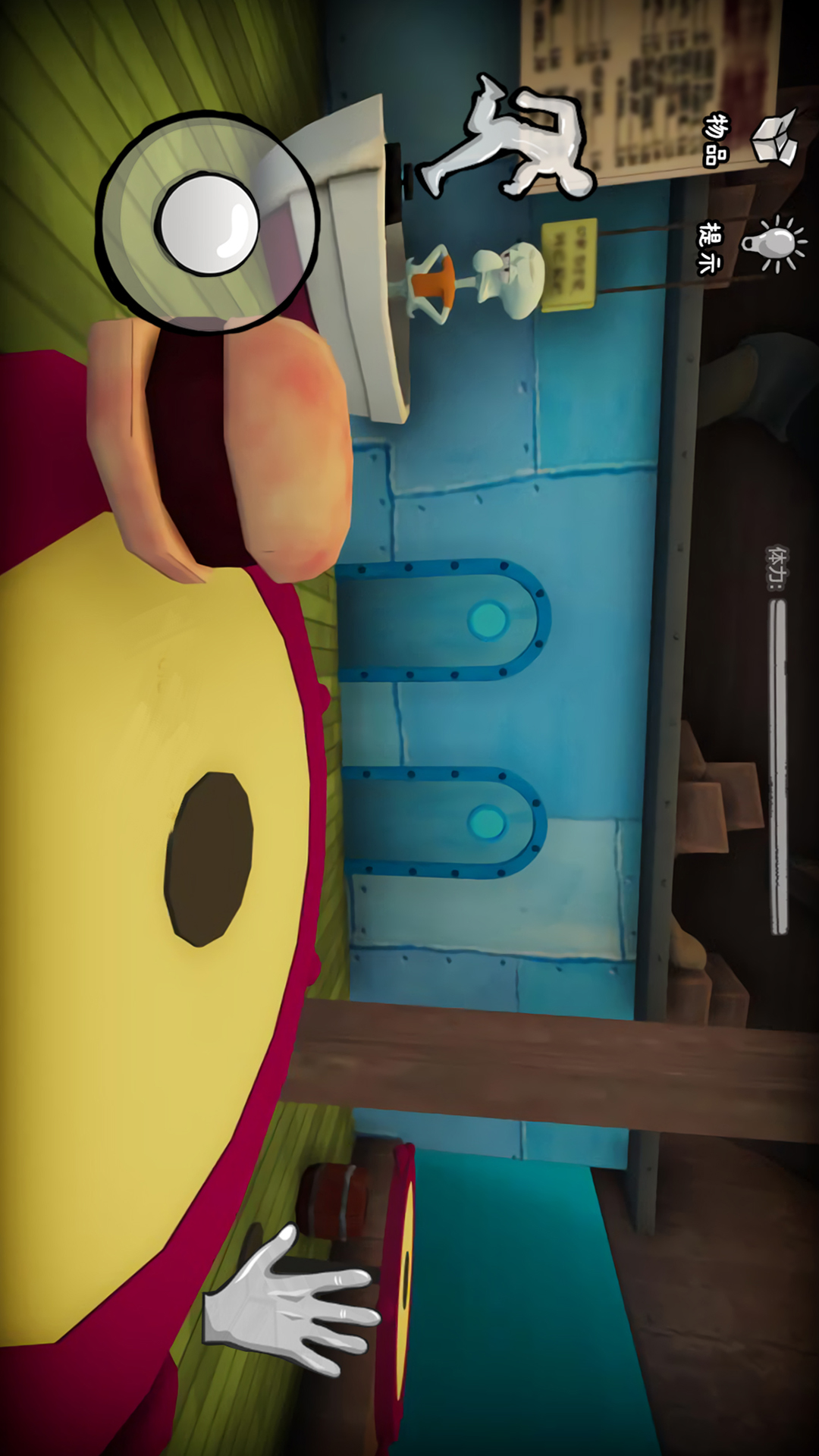 - 线索和道具可能被随机隐藏在各个地方,所以您必须保持镇定,冷静地躲避海绵宝宝的追杀。