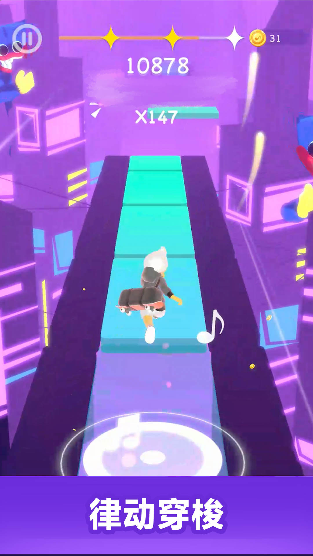 每个关卡都是新的冒险,充满了新的节奏和等待征服的曲目。音乐游戏元素与跑酷玩法的无缝集成,确保您无论是在躲避障碍物还是击中下一个节拍时,体验都保持流畅、刺激,并且充满音乐性。