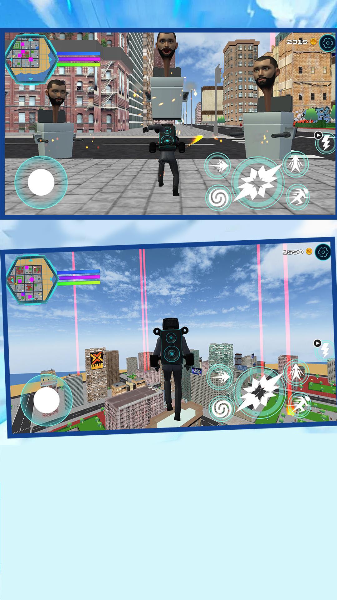 监控人模组游乐场是一款科幻热血的超级英雄冒险战斗手游。玩家将扮演一位监控人超级英雄,拥有超能力,可以自由飞越城市,拯救受困的公民。玩家将会化身为正义的监控人超级英雄角色去把城市里那些为非作歹的罪犯全部逮捕,完成的任务越多监控人所掌握的技能也会越丰富,飞天、遁地、千里眼、顺风耳等等几乎无所不能,监控人那帅气的外形也能激发很多玩家们的热情。游戏中还有超多有趣的内容等待玩家去感受,让你尽情享受超级英雄的快感。
