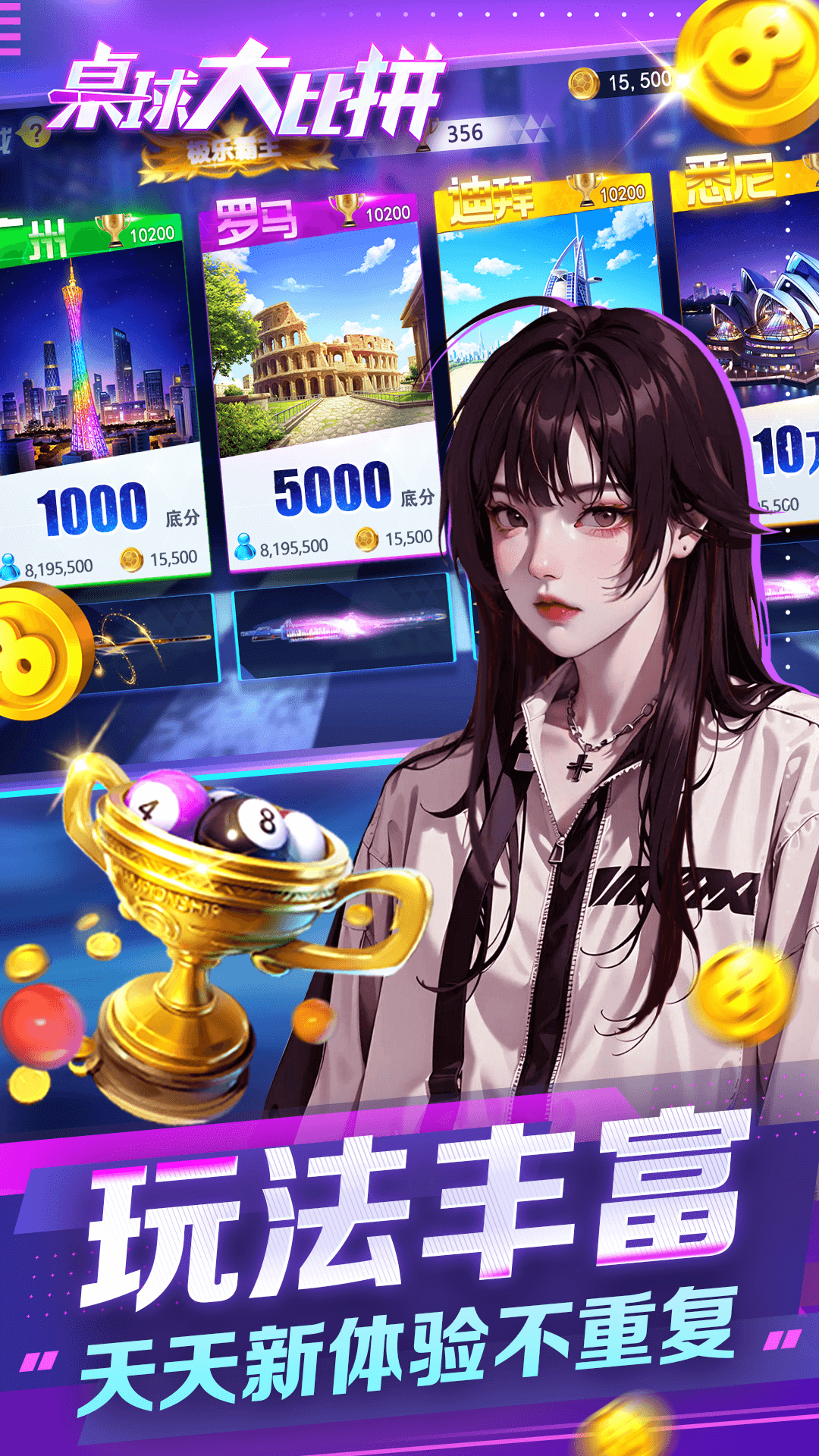 在桌球大比拼中,球桌不会太滑和太糙,2D3D视角可以随意切换,2D视角适合观察球与球之间的距离和叫位,3D视角能让您身临其境,更有助于对袋口的瞄准。您还可以体验到全球同服竞技,面对面约战切磋台球,挑战高手进阶的闯关模式,轻松体验到台球的推杆、高杆、低杆、加塞、翻袋、K球、吸库等高级技巧,真实感受到台球对局胜利的乐趣。是台球爱好者的优选。