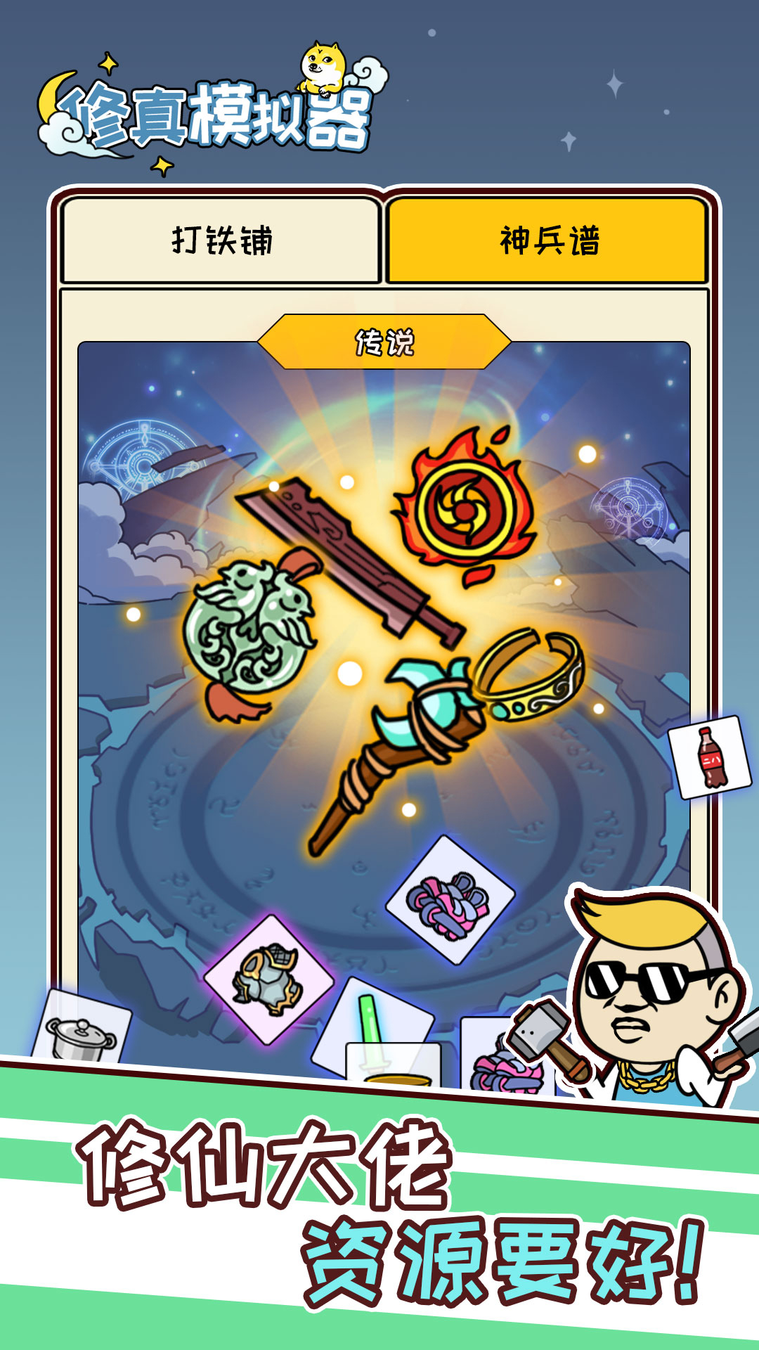 《修真模拟器》是一款诙谐搞笑风格的放置修仙游戏,玩家将扮演收破烂的小蔡吉,在垃圾仙人的引导下收多多的破烂,修有梗的仙,结交道友、开拓地盘、合成神器、收服神兽……小蔡吉的目标是渡劫成仙,迎娶翠花,走上人生巅峰!