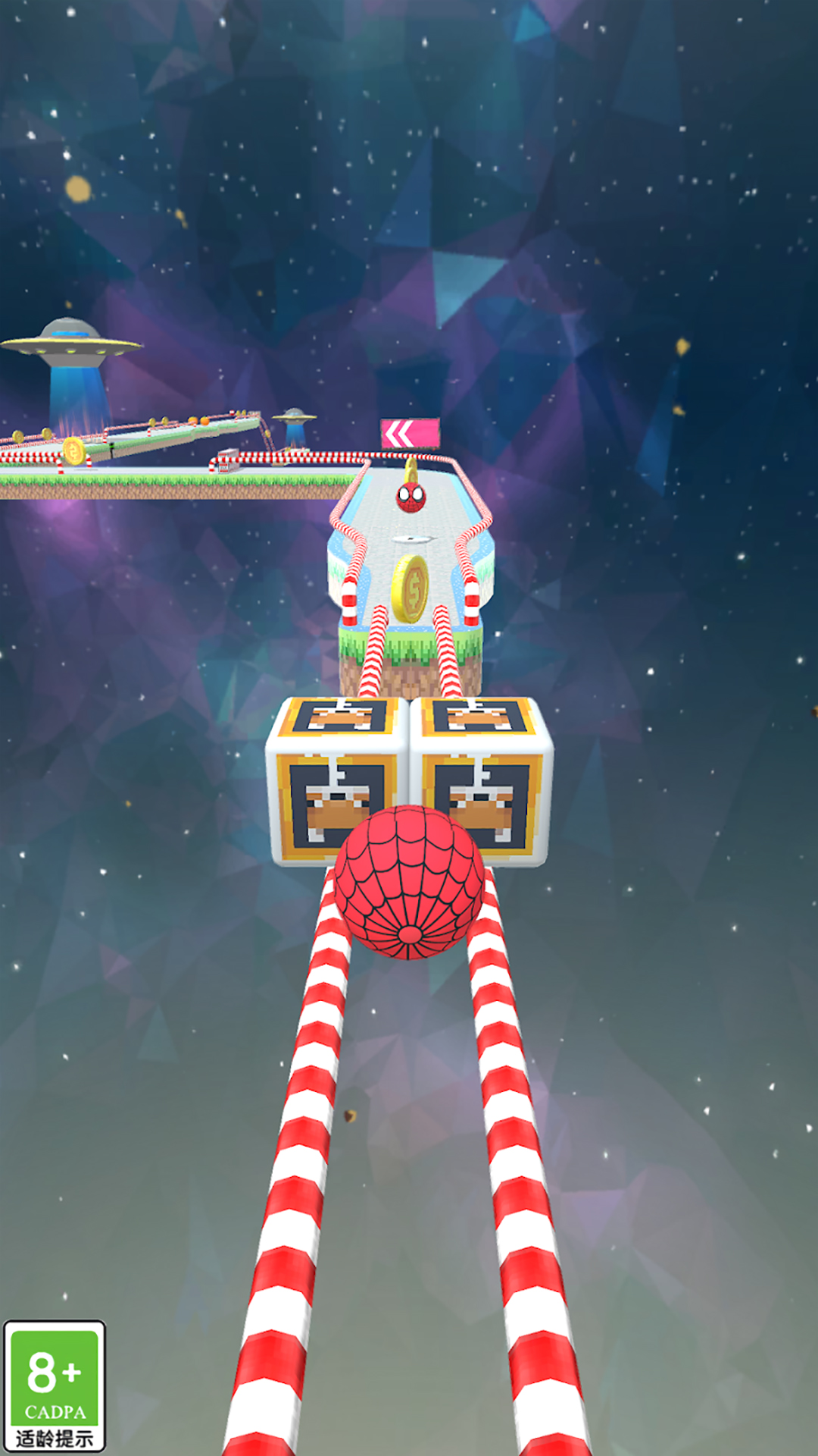 一款快节奏休闲游戏。画面简洁精细,玩家要操作一个滚动的小球在充满障碍和陷阱的平台上往前滚动。游戏操作很简单,玩家只要按住屏幕并划动,就能控制小球是往左滚或者往右滚动,只要成功避开障碍物和陷阱,就能继续前进。游戏内置多个关卡,风格各不相同,障碍众多。