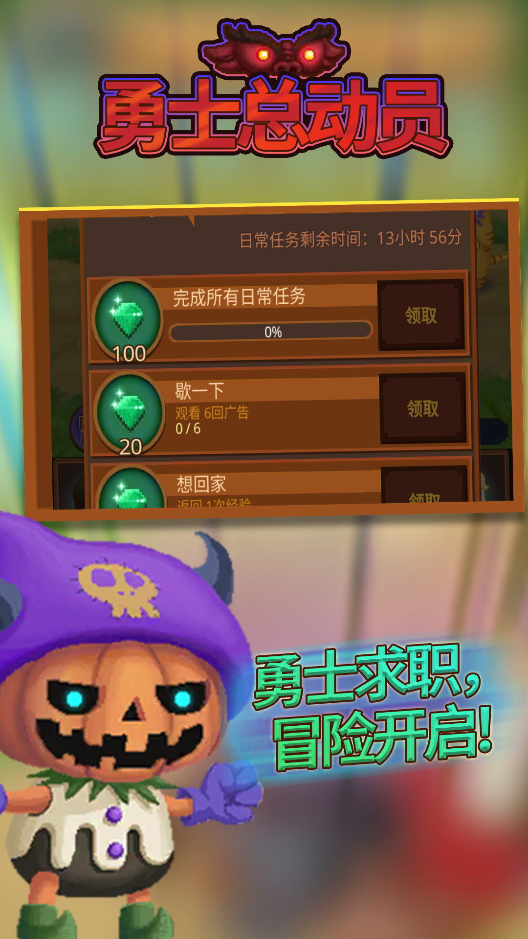 在《勇士总动员》这款冒险游戏中,玩家将被带入一个充满精美画风和可爱角色的奇幻世界。面对勇士们就业的难题,智慧的国王采取了招聘策略,召集了一群杰出的勇士们。玩家将与这些勇士们一起,踏上充满挑战的副本冒险之旅,体验收集与自动战斗的双重乐趣,享受无限成长的挂机游戏体验。