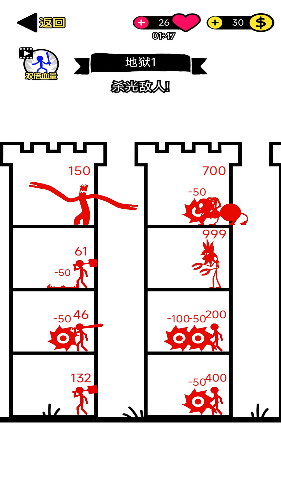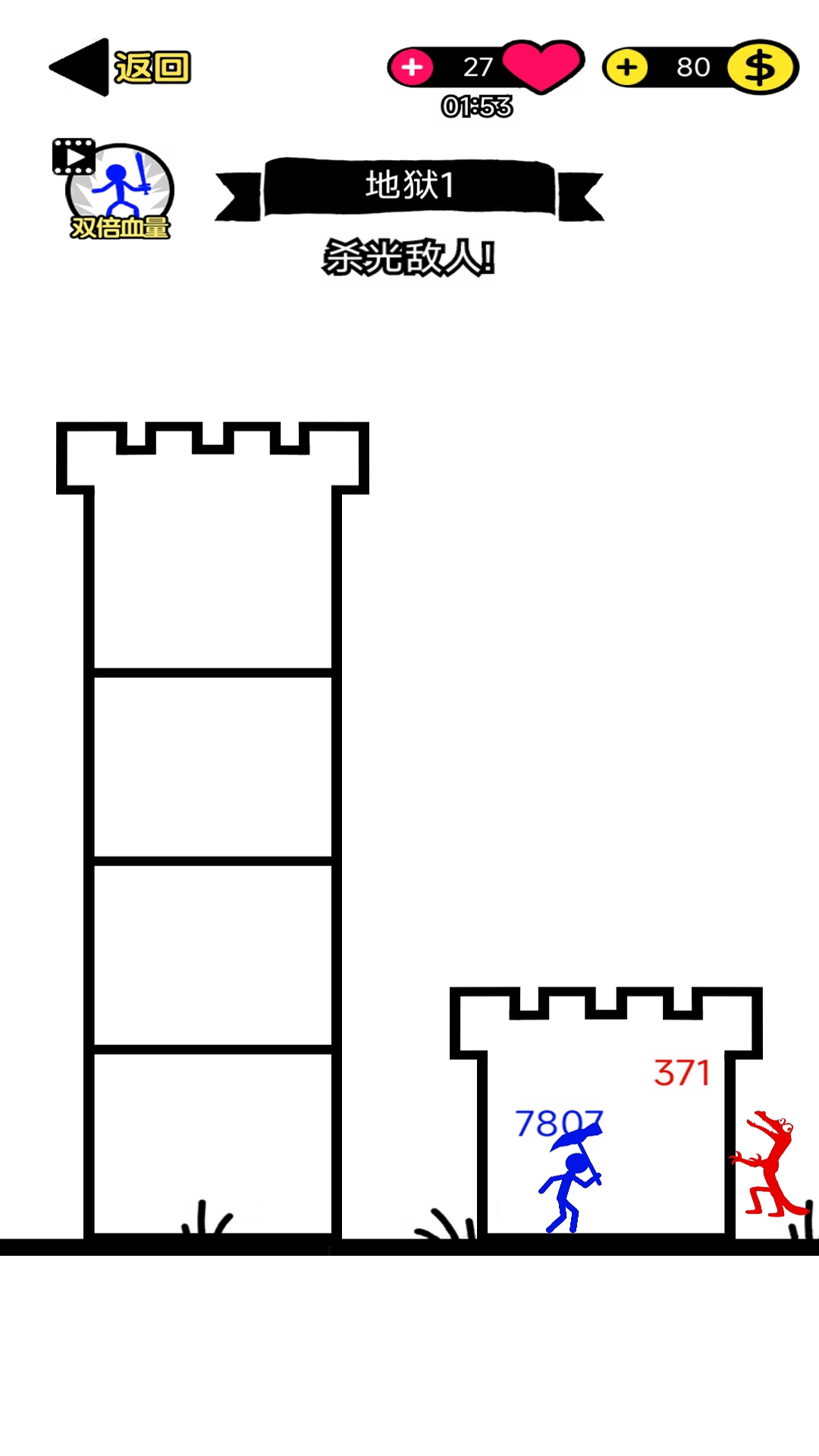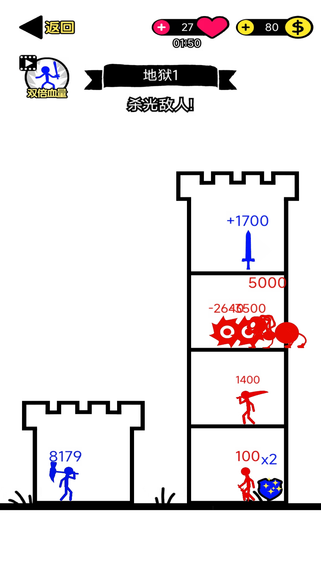 根据小人头上的武力值来和敌人战斗,可以选择一些武器来帮助你,要注意敌人头上的武力值哦,不要一不小心被敌人攻击啦。
