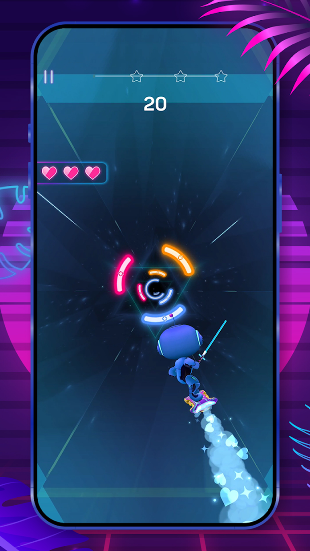 移动并拖动手指来划出圆圈!聆听音乐,以花哨的节奏保持节奏!控制您的角色在色环之间穿梭。您将体验丰富的角色动作和炫酷的特效。但是,如果您击中其他颜色,则一切都结束了!你的球粉碎成碎片,你必须重新开始下落。
