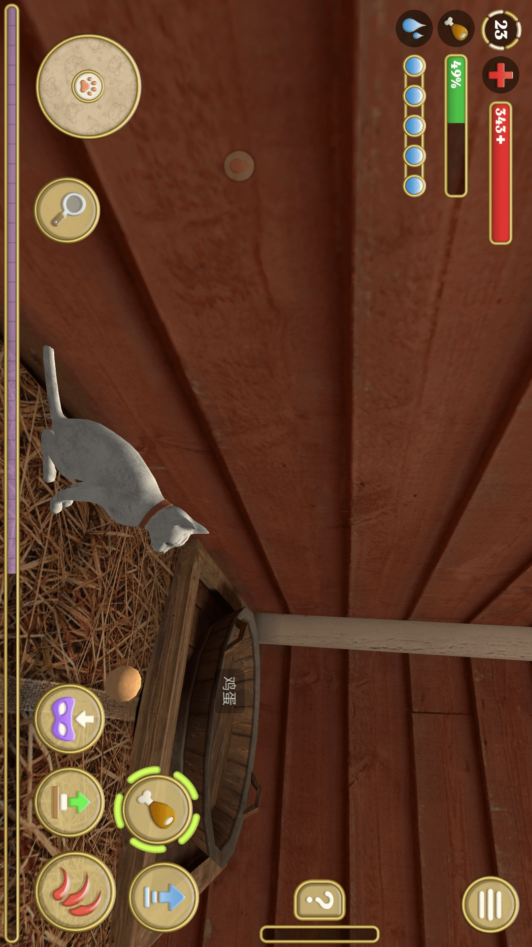 奔跑、跳跃、攻击或是发出猫叫,玩家要注意猫咪的血量、体力等等,作为一只猫咪的生活是怎样的?