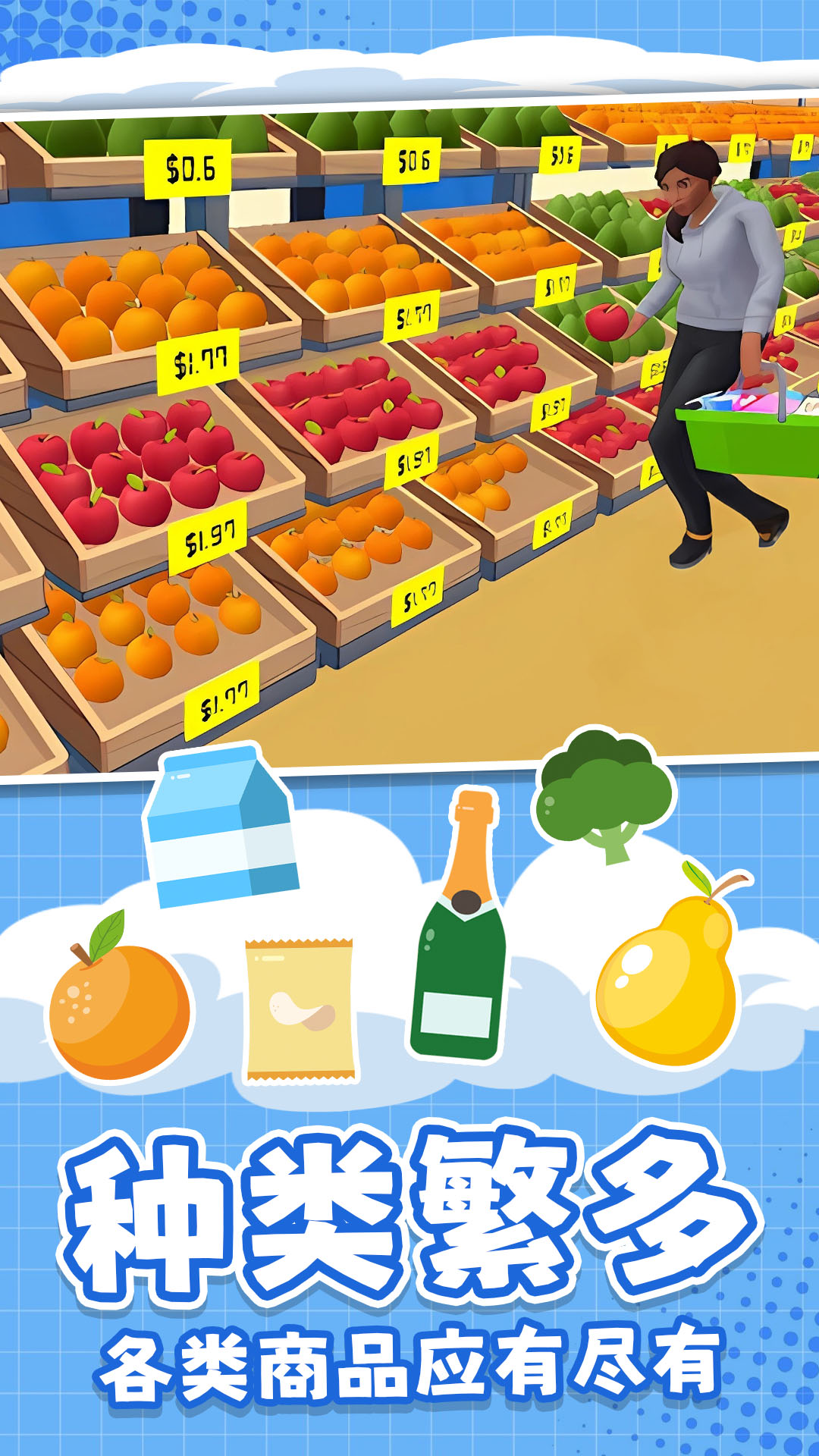 《解压超市》一款有趣的模拟当超市老板的游戏,模拟当超市老板的游戏中,玩家将接手一家超市,从商品采购、货架摆放、价格设定到员工管提高超市的运营效率和盈利能力。通过制定正确的游戏策略,玩家可以打造一个成功的超市帝国,赢得更多利润和口碑。