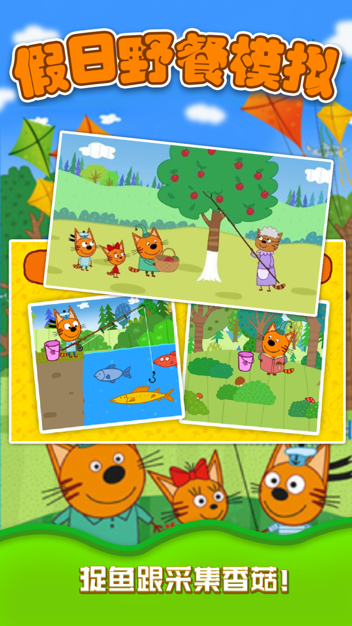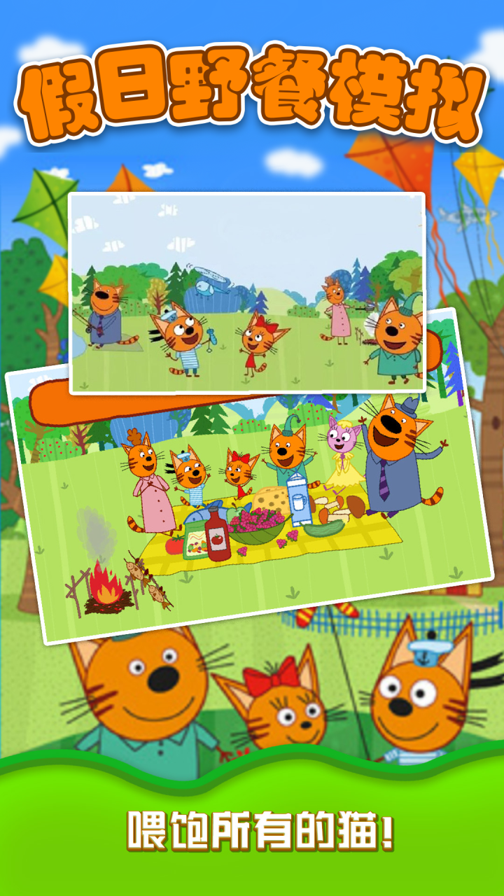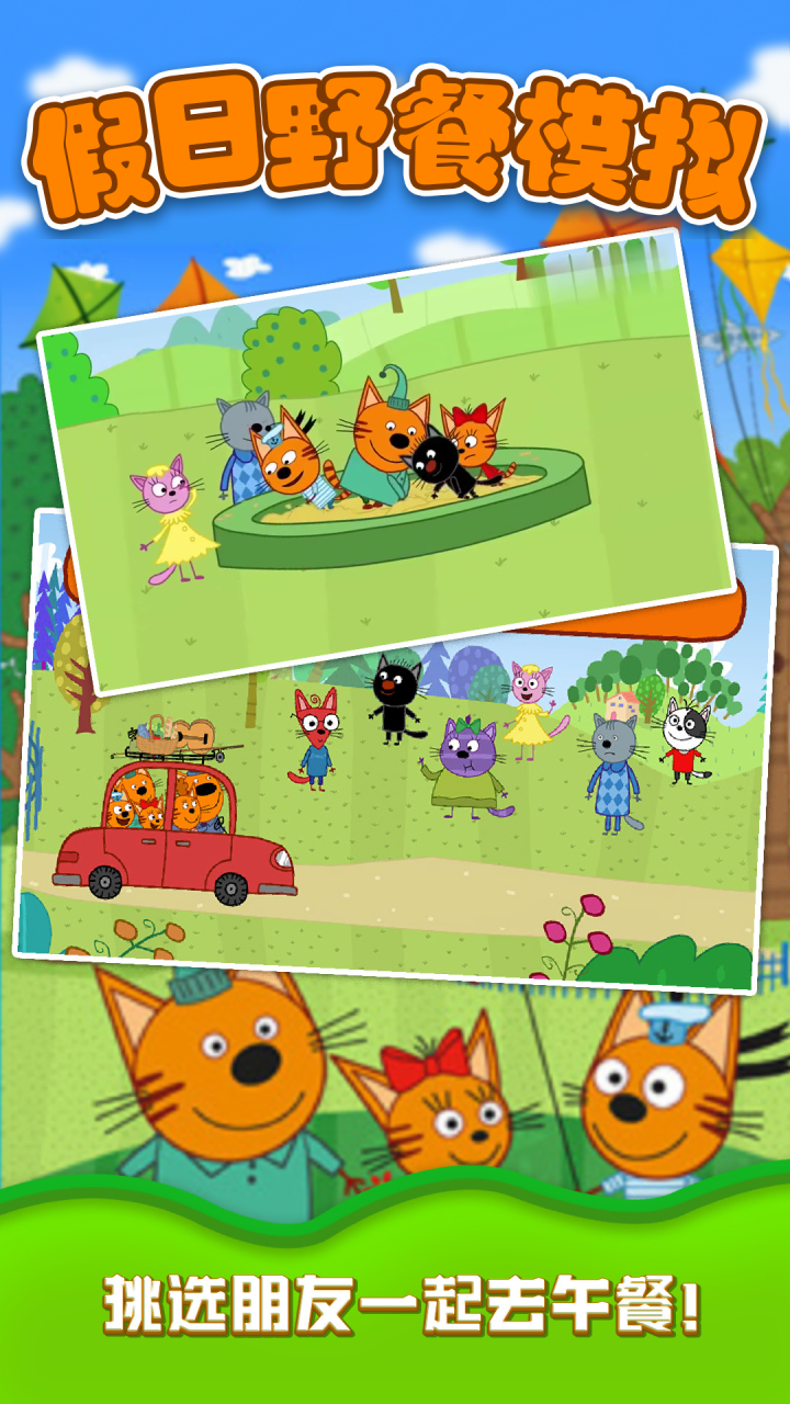 挑选你喜爱的小猫邀请参加野餐活动,每次野餐都可挑选不同角色。