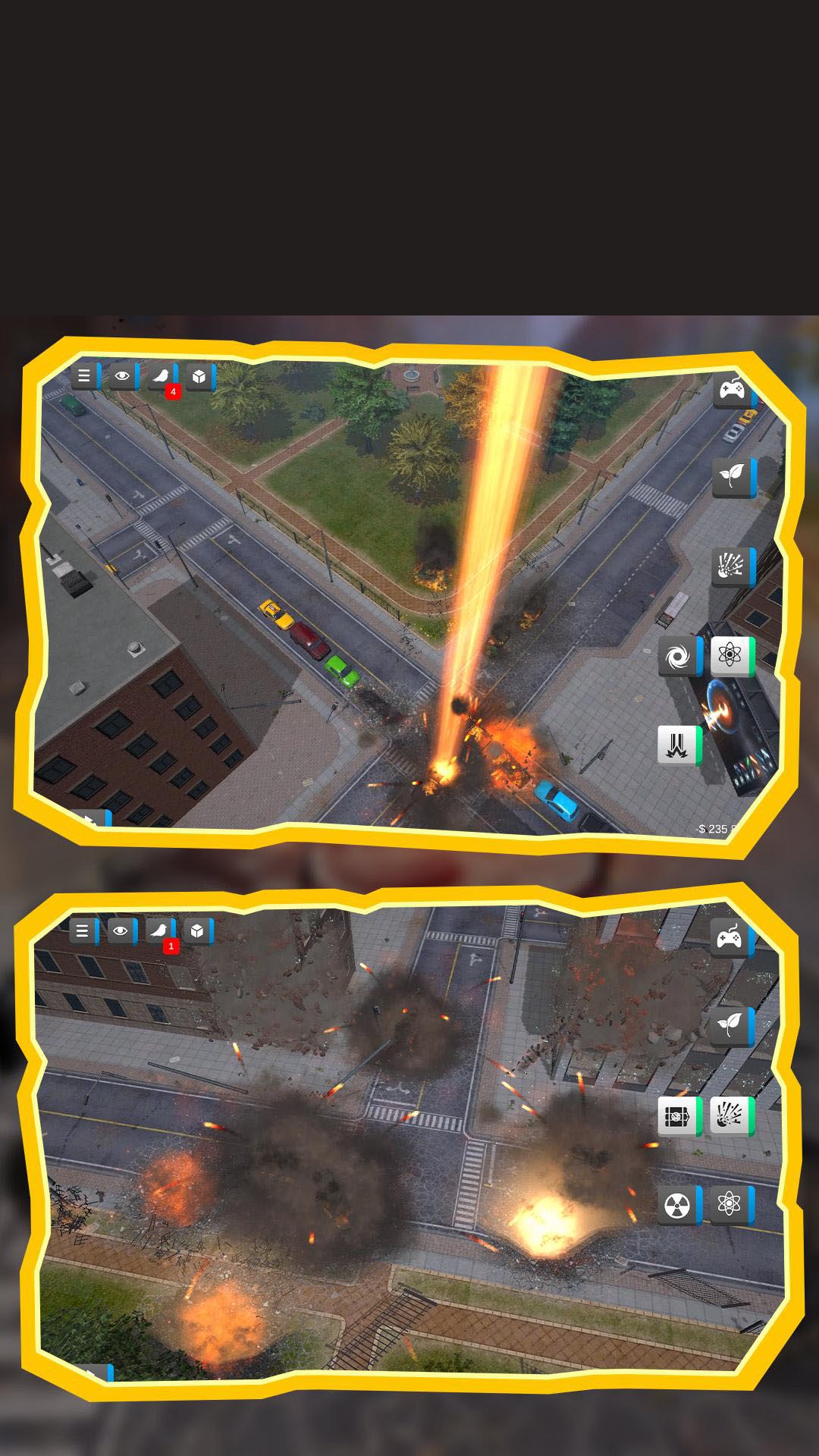 粉碎城市2是一款非常解压的3d真实毁灭模拟手游,游戏以毁灭城市为主要题材,在旁观者视角之下通过操控各种自然灾害来对城市进行毁灭,玩家能够使用的毁灭手段不局限于海啸飓风等,更可以召唤强大的怪兽与外星人,以更加肆无忌惮的姿态来蹂躏脆弱的人类都市。