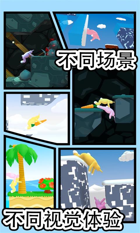 《疯狂兔子人》是一款非常魔性的兔子人翻滚闯关类游戏,规则简单,上手容易,在游戏中,玩家需要通过触屏来不断操控兔子人来回滚动,跳跃爬行,前往旋转的传送门之中。在这个过程中,玩家需要控制兔子人越过悬崖,横跨地刺,一路躲避种种恶搞的机关陷阱!拾取萝卜可提升喷射次数哦!快来体验吧!