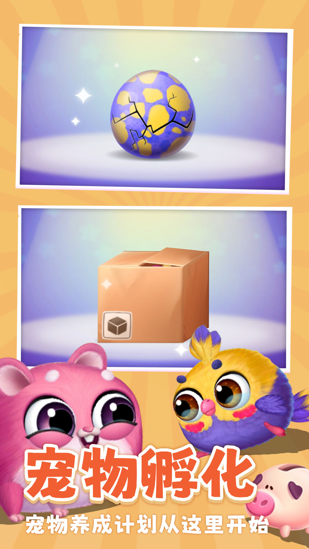 1.超多精美的卡通宠物物种,可以孵化养成;