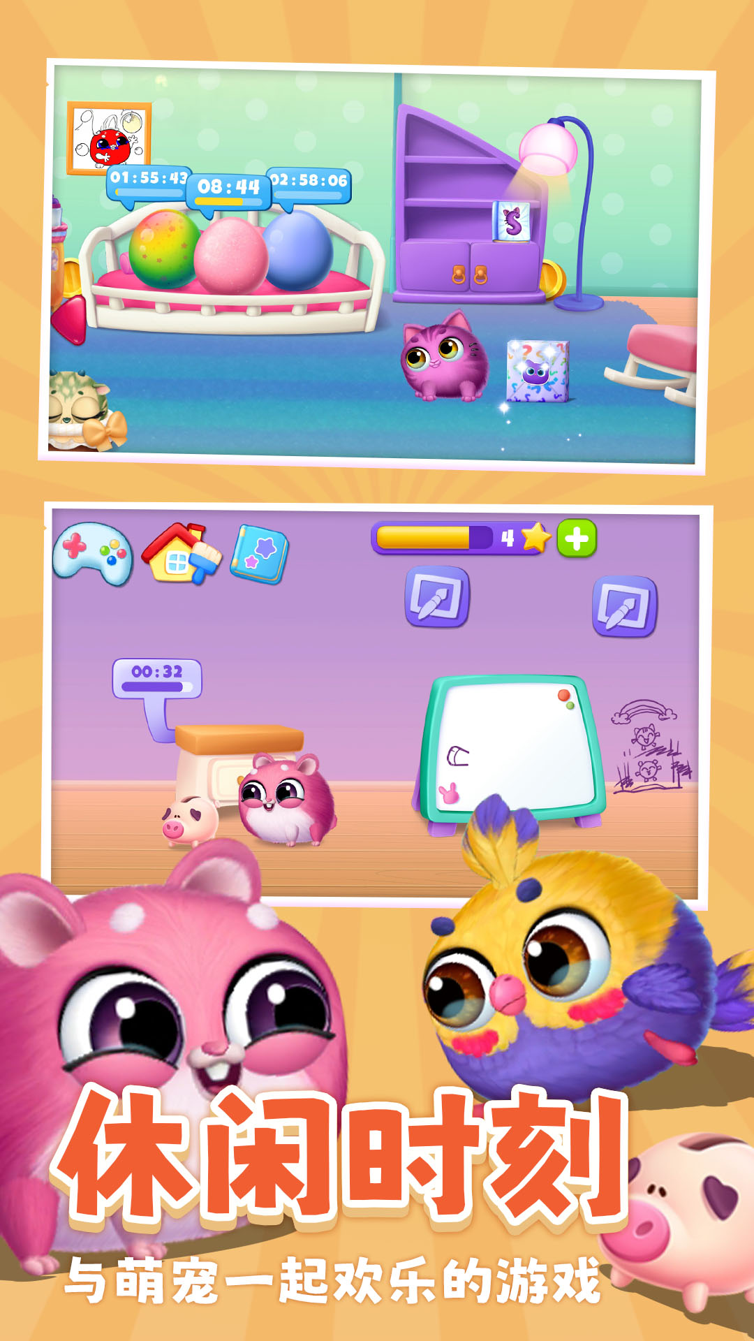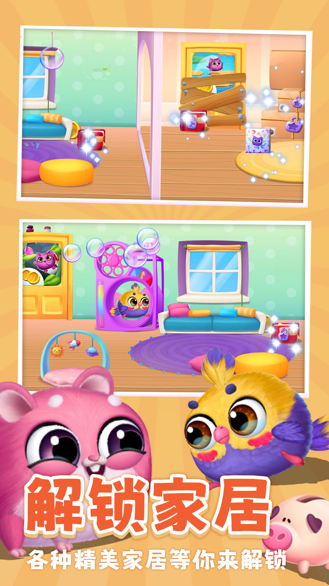 《我的毛球小精灵》是一款宠物模拟养成游戏,在这里,玩家拥有一个满是可爱的虚拟宠物生物的房子。照顾好这些可爱的宠物,发现它们带来的精彩故事,以及操作小宠物们进行各种小游戏。你可以通过解锁养成和小游戏获得的金币来积攒更多小星星,小行星可以解锁更多独特的房间或室内装饰道具。