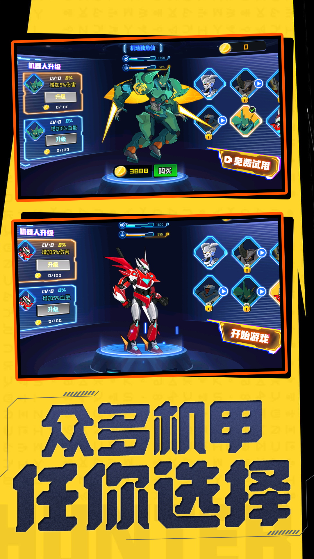 《机甲机器人对决》是一款超燃的机甲格斗手游,在手掌中还原街机格斗搓招操作,回归格斗游戏热血本质。连招、防御、投技、闪避、上下段攻击悉数还原。激燃关卡畅爽战斗,拳拳到肉的打击反馈,让你尽情挑战连招上限。在激烈的格斗比赛里锤炼你的战斗技巧,强化你角色的独特能力,通过战胜不同的敌人来证明你的格斗天赋,赢取属于你的冠军!