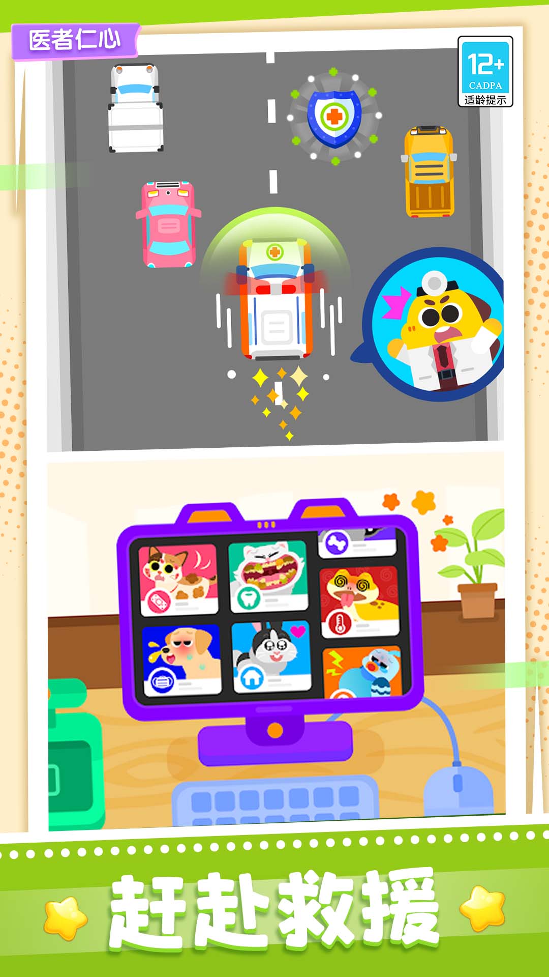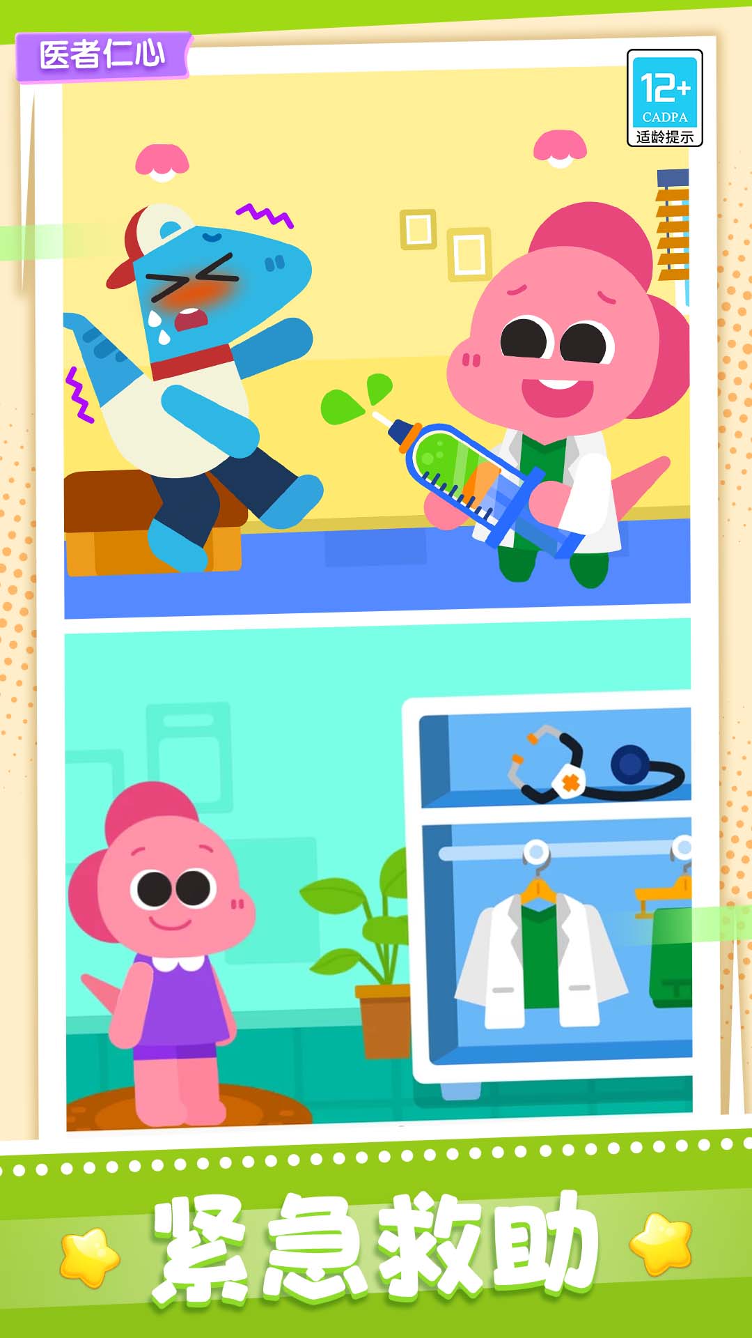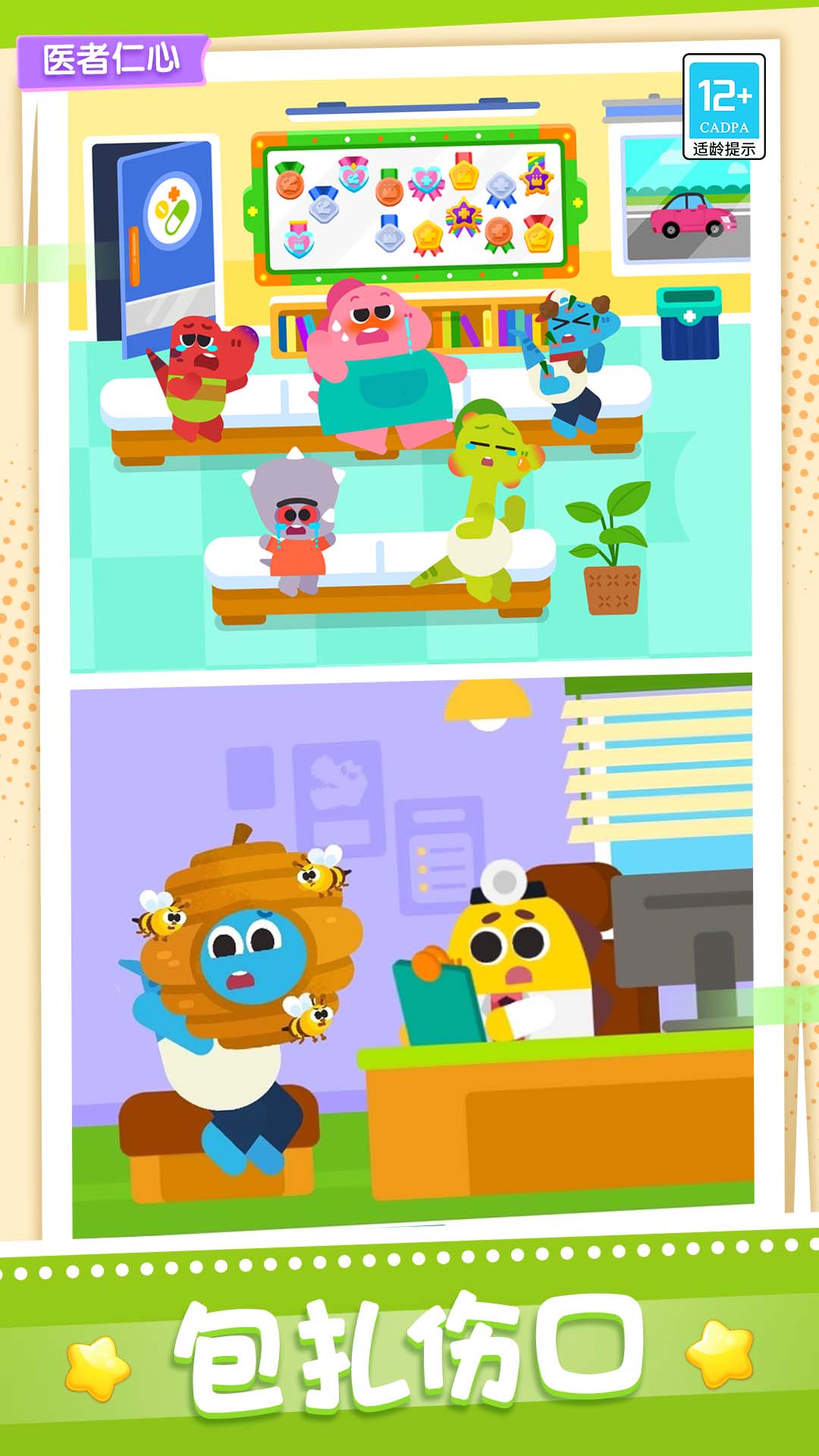宝贝医院是一款模拟类教育游戏。在游戏中,当你穿上白大褂,佩戴上专业的听诊装备,你就成为了宝贝医院的一名医生,就可以进入医院内,为等候室内的客人朋友们看病治疗!游戏中为你设置了不同的场景及病症,朋友们可能会出现感冒、骨折、过敏等一系列,你可以根据朋友们出现的这些不同症状,对它们进行针对性治疗,为它们打针、清理伤口、找到隐藏在身体里的病毒等操作,在这个过程中,有细致的引导,会指引你为它们进行治疗,不用担心自己的操作无法帮助到你可爱的朋友们!每次治疗结束后,你都有机会获得可爱贴纸,这些都是对你的超级奖励!