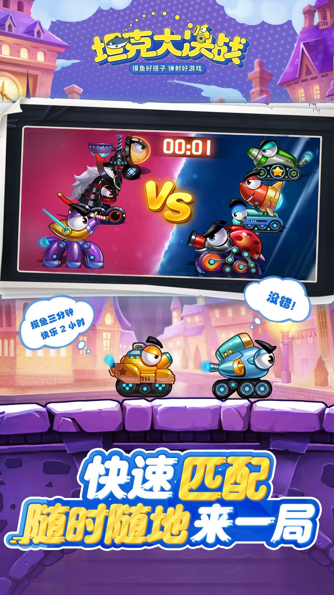 学生党课间开黑battle,家庭成员合家欢,无论你身处何时何地,你身边的人就是你的战友。游戏上手简单,地图丰富,空中庭院、海底世界、热带丛林、神秘遗迹等经典地图应有尽有,快带着你的朋友们一起开黑,探索《坦克大决战》的世界吧!