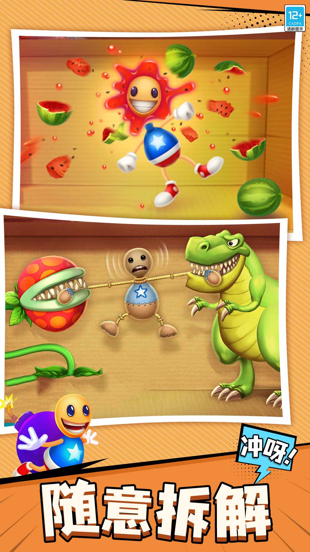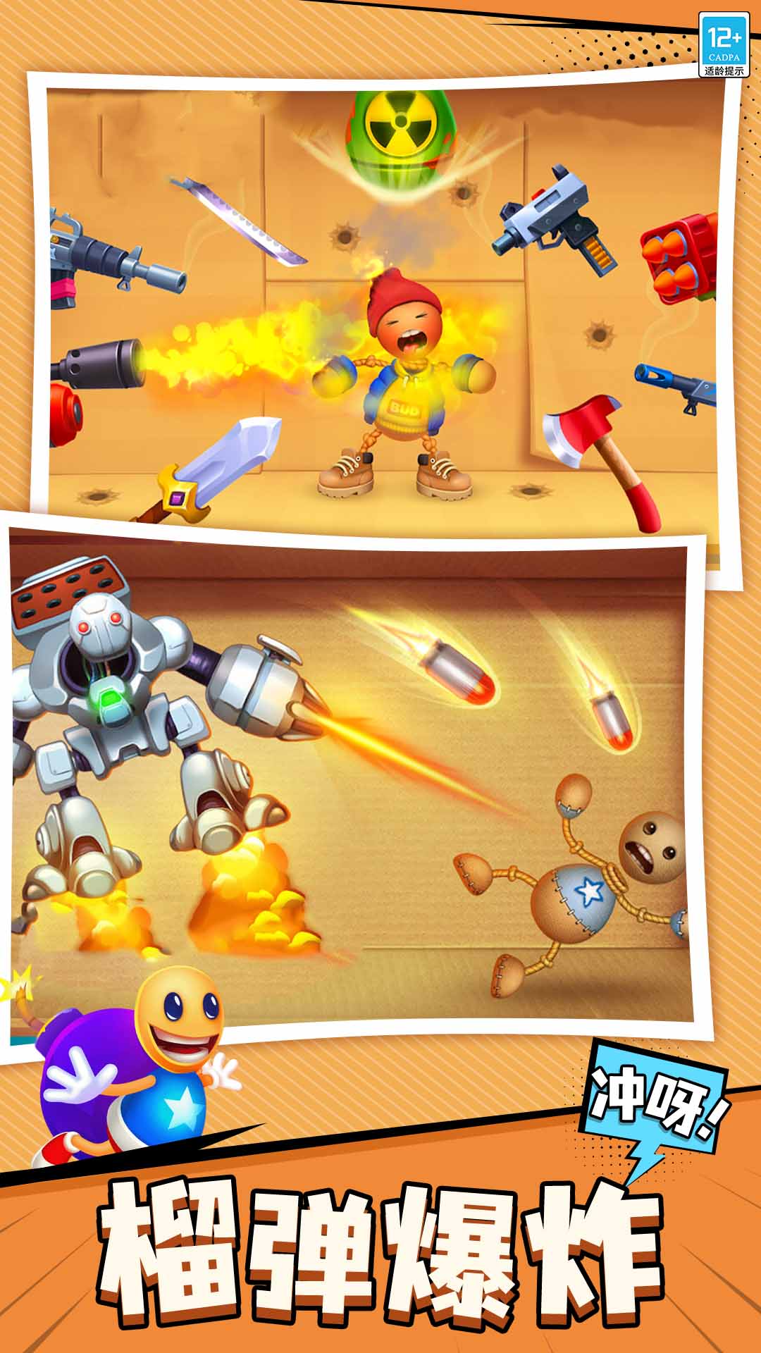 暴击木偶是一款休闲解压游戏。游戏内,你将看到一个卡通趣味的木偶模型站在场景中间,你可以根据游戏指引,对它拳打脚踢,若你觉得拳脚的力量无法完全释放压力,你还可以选择更多的武器,如火箭筒,飞刀或者手榴弹对木偶进行攻击,直到木偶被完全击败,并且每件武器都有不同的视觉效果,给你带来炫彩的视觉体验!游戏中还贴心设置了不同的场景及时尚服饰,色彩及质感都十分逼真及柔和,你可以为木偶搭配自己喜好的服饰,选择更喜欢的场景,在这里肆意发泄压力,平和自己的心态!