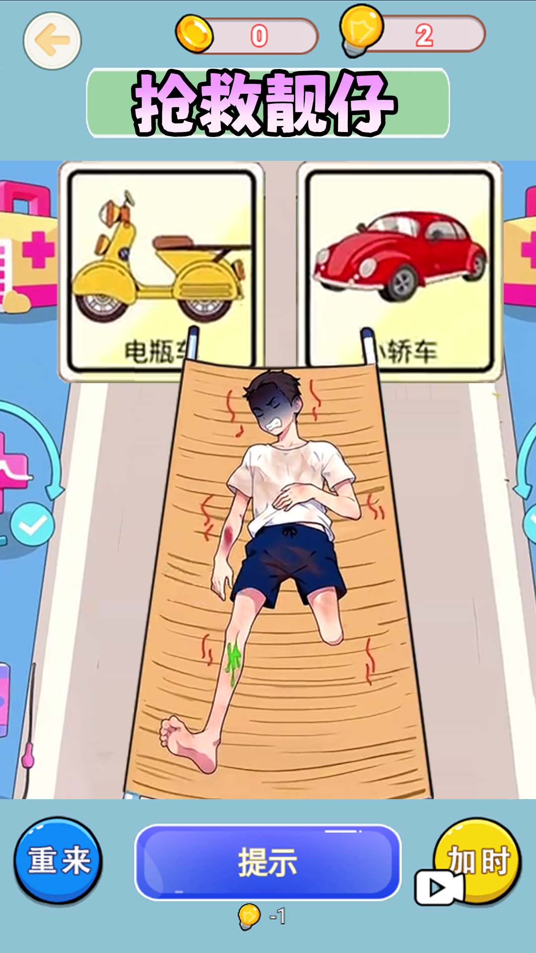 《抢救小姐姐》是一款休闲益智小游戏,玩家需要使用合适的方式帮助受伤的小美进行治疗,善良的你快来帮帮她吧。