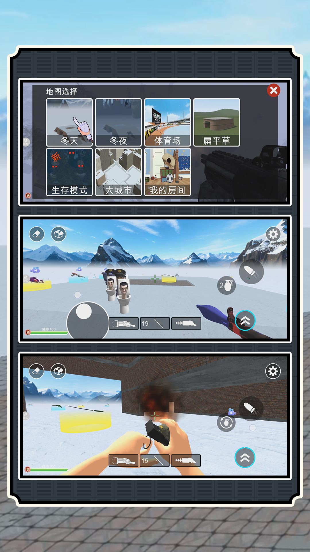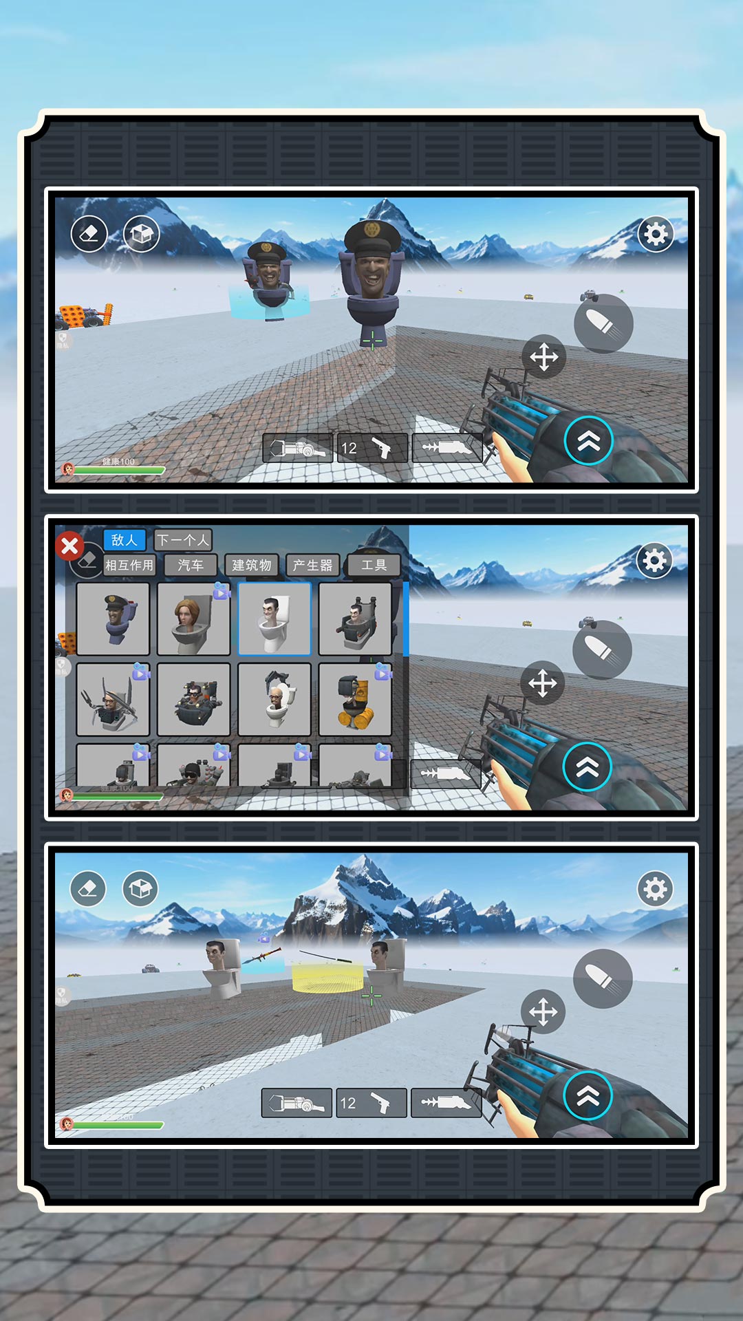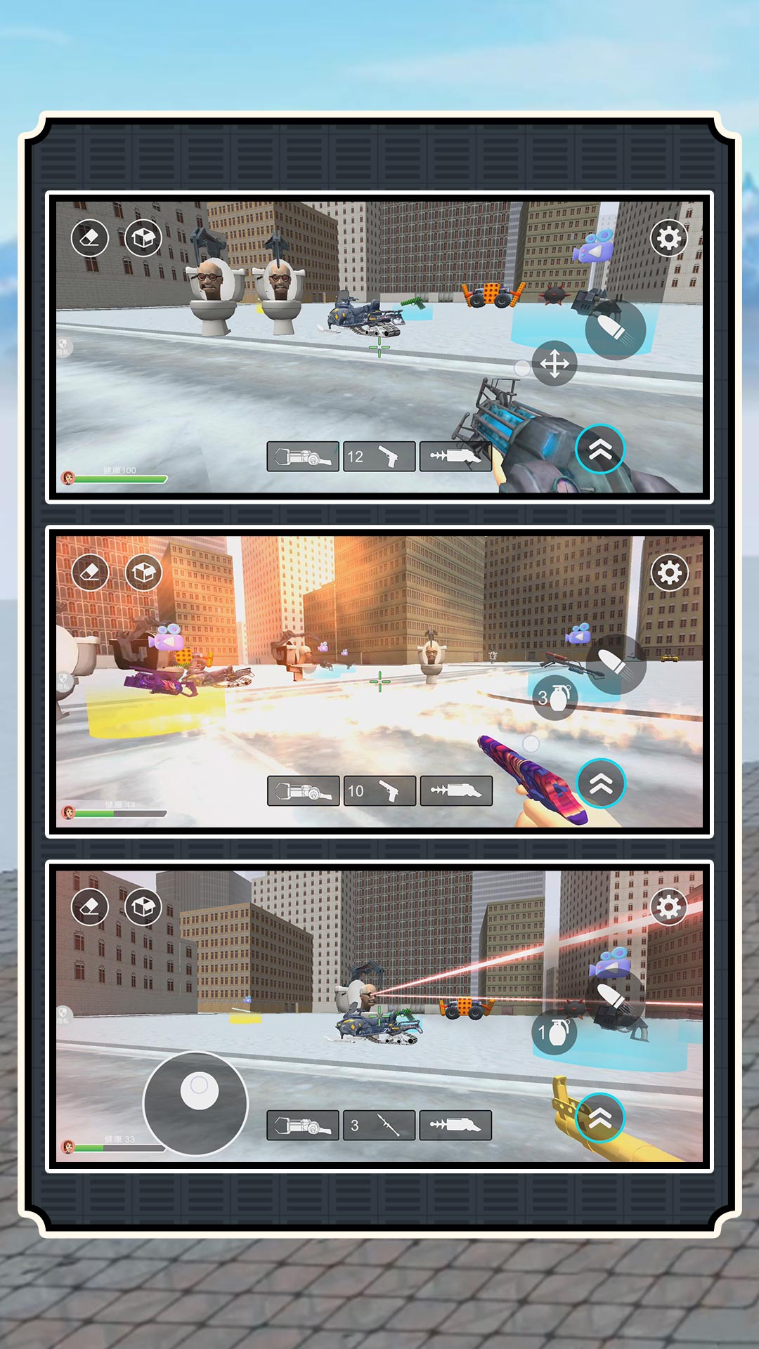 一款休闲益智的沙盒射击游戏。在这款游戏中,你将扮演一个指挥官,穿越马桶人世界里,解锁各种玩法和提升自己的创造性,与其他各种恶搞角色展开激烈的战斗。游戏中的有大城市和大草原两个地图可选,世界千奇百怪,充满了各种令人捧腹的元素。你将在这个世界里遇到各种各样的搞笑的奇遇,比如转角就能遇到的马桶人突袭、躲避纸片人的追击、解锁各种神秘的敌人和盟友以及工具。游戏中全新的创造模式和射击玩法,你可以组建自己的纸片人军队,来一场军队大战!