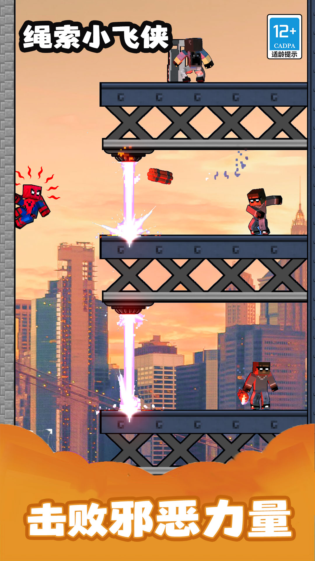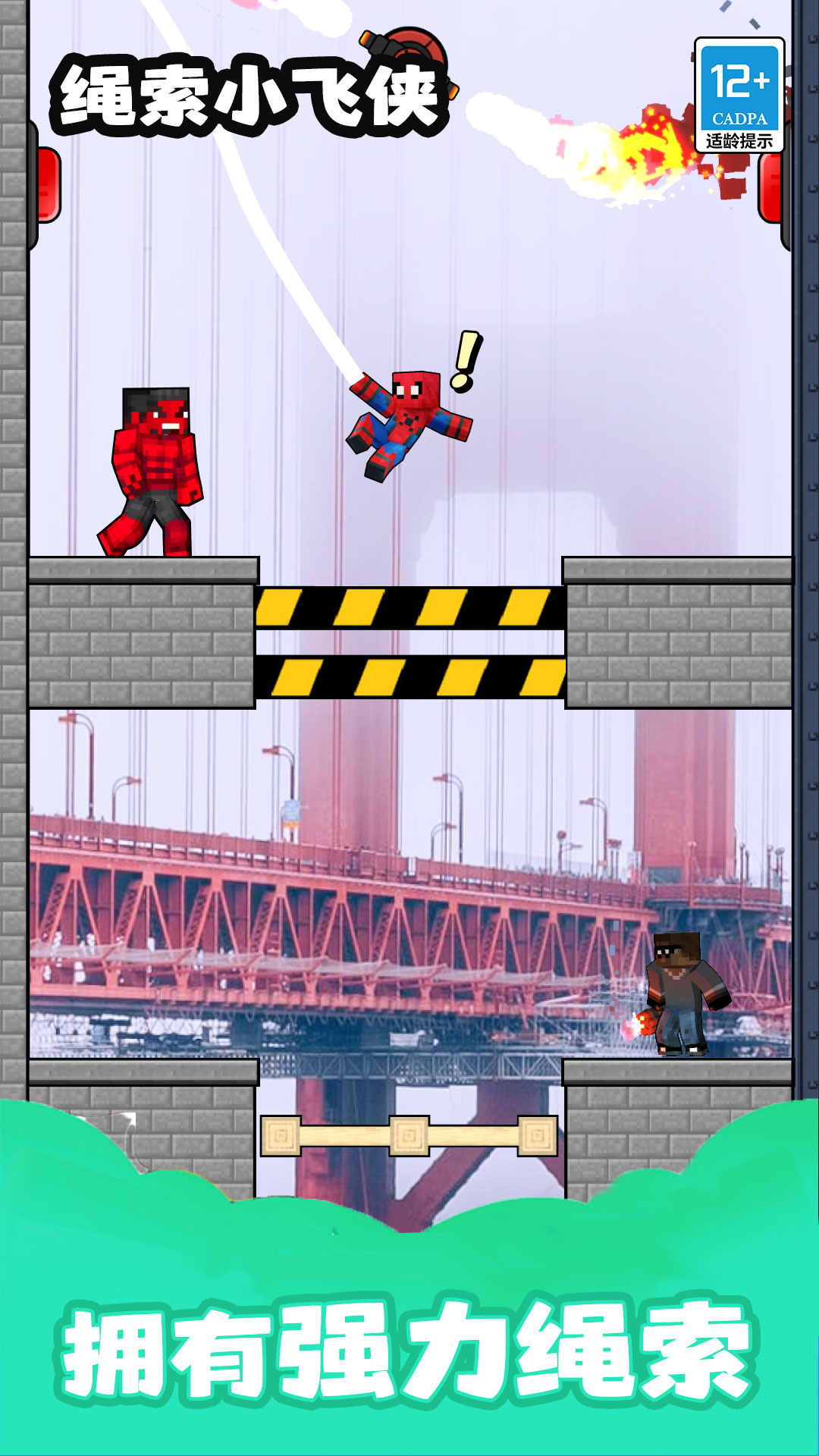《绳索小飞侠》是一款蜘蛛英雄动作闯关游戏。游戏中,玩家将操作拥有超强力量和跳跃本领的小飞侠,迅速地在墙壁间来回跳跃,敏捷地躲避攻击和危险,掷出绳索向敌人发起毁灭性的连击。