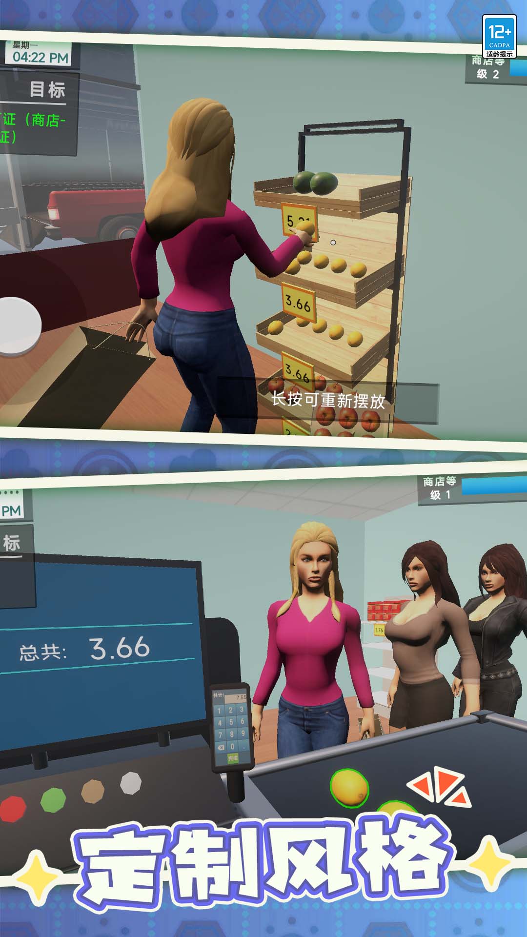 我要开超市是一款创意休闲的模拟经营游戏,你将成为老板,从零开始学习经营一家超市,成为超市大亨!在游戏内,你将从零开始学习,跟随引导点击,学习如何在超市场景内自由行动,为超市的货架进货补货,填充超市吸引客人前来,从而完成超市交易,获得成功的满足感受!在游戏过程中,你可以通过对超市进行升级,扩充超市区域,自由更换超市装修内容,获得商品的售卖许可证明,让你的商品种类越来越多,超市规模变得越来越强大,成为一个成功的超市经营者!在超市经营的过程中,你还需要学会如何为客人结账,真实的结账环境可以让你体验到收银员的工作,动用你的大脑,利用计算能力,快速为客人们结账,收取正确的金额,让超市的经营变得更加井井有条,让你的商店脱颖而出!