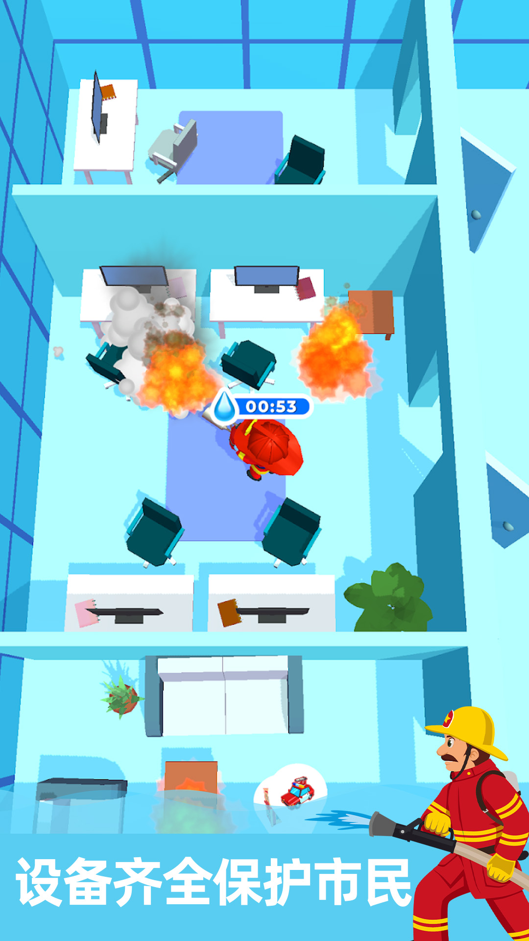 这是一款消防员游戏,你必须保护你的城市!升级主角和设备,快速响应火灾信号和使用消防车将帮助扑灭火灾,即使在城市的角落!你是小镇上的消防员。你的任务是尽快扑灭大火!这个游戏的主要特点是速度。你必须对新的挑战做出尽可能快的反应,并拯救陷入困境的人。