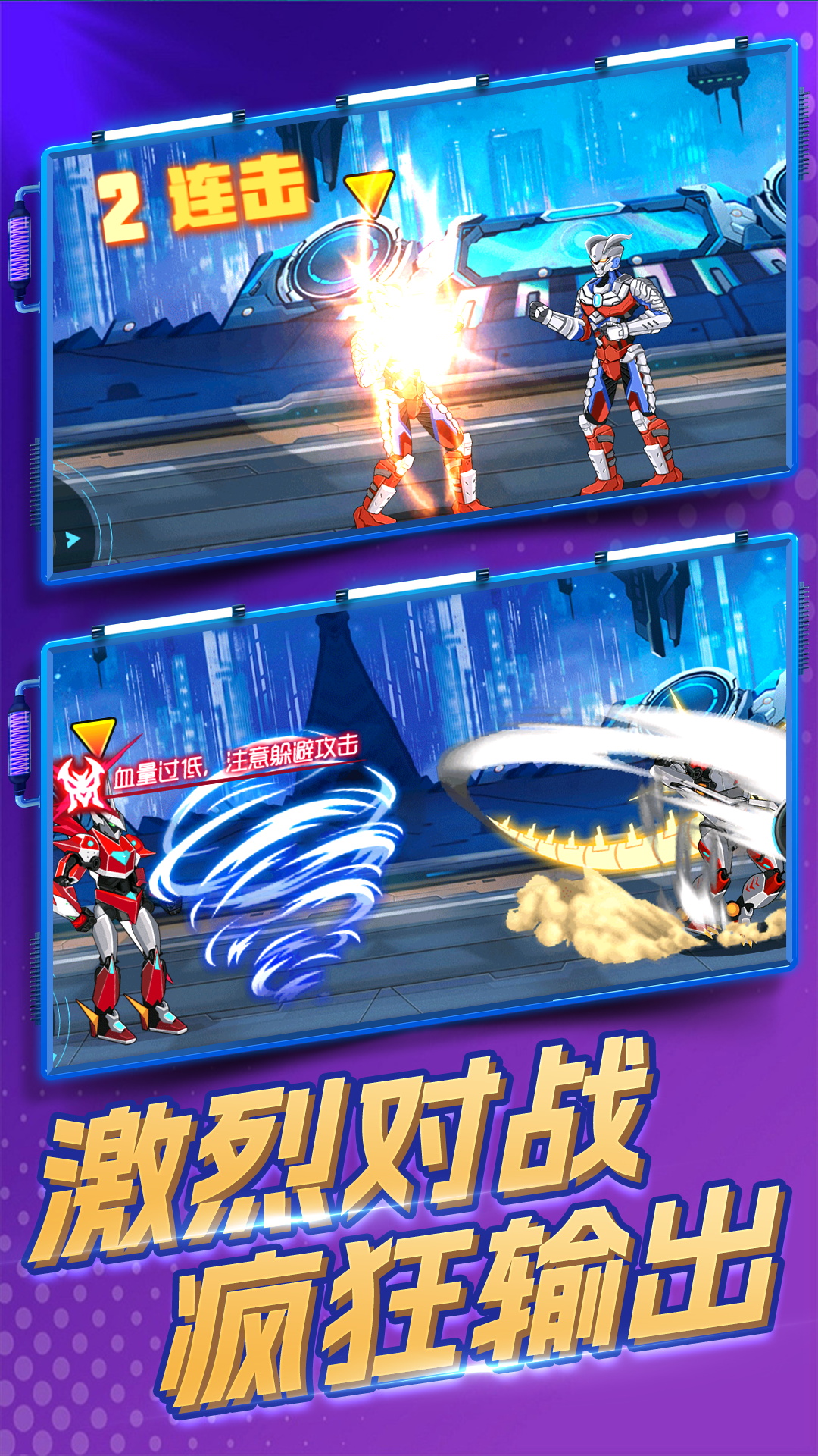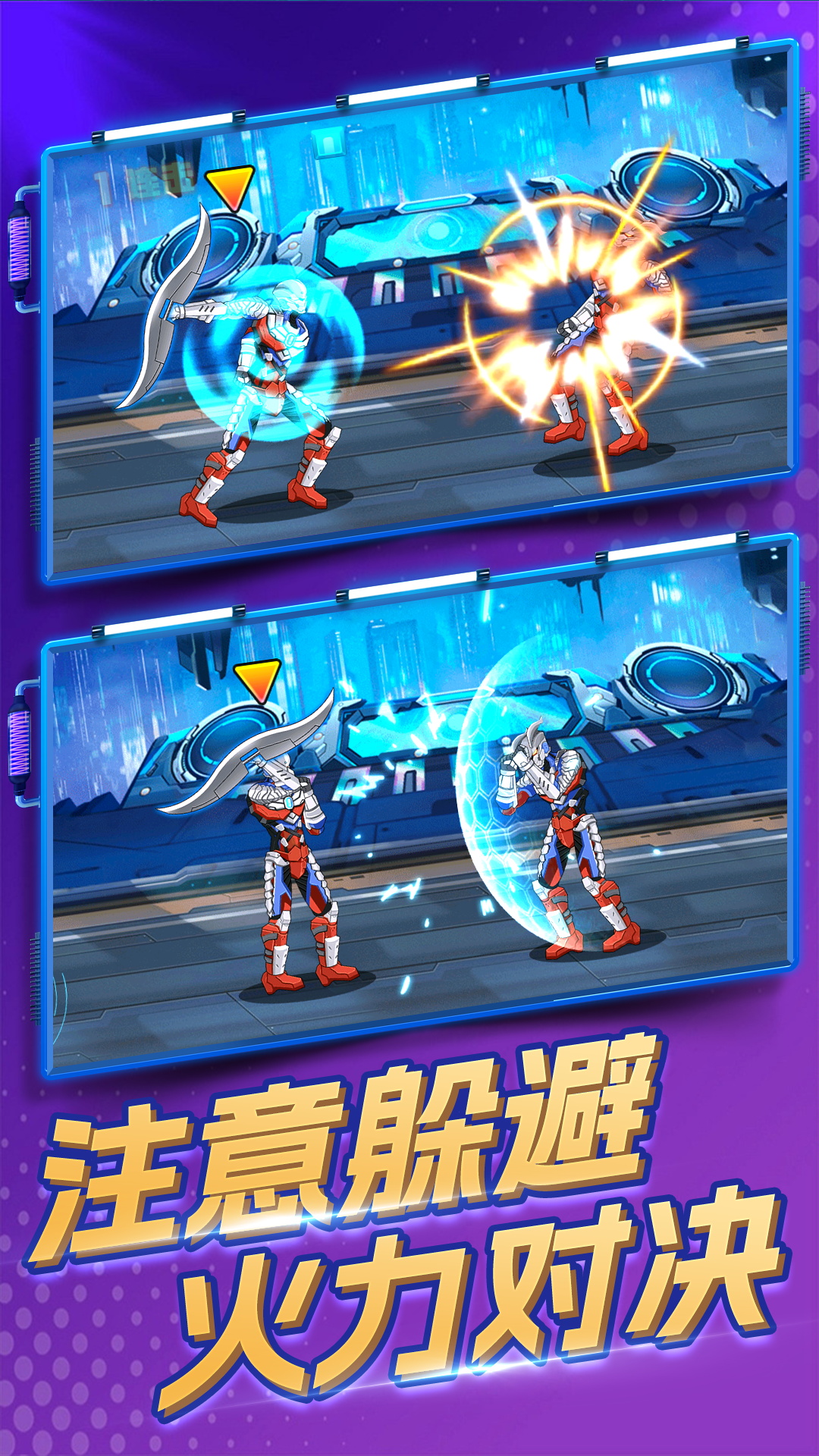 《钢铁战士大作战》是一款超燃的机甲格斗手游,在手掌中还原街机格斗搓招操作,回归格斗游戏热血本质。连招、防御、投技、闪避、上下段攻击悉数还原。激燃关卡畅爽战斗,拳拳到肉的打击反馈,让你尽情挑战连招上限。在激烈的格斗比赛里锤炼你的战斗技巧,强化你角色的独特能力,通过战胜不同的敌人来证明你的格斗天赋,赢取属于你的冠军!