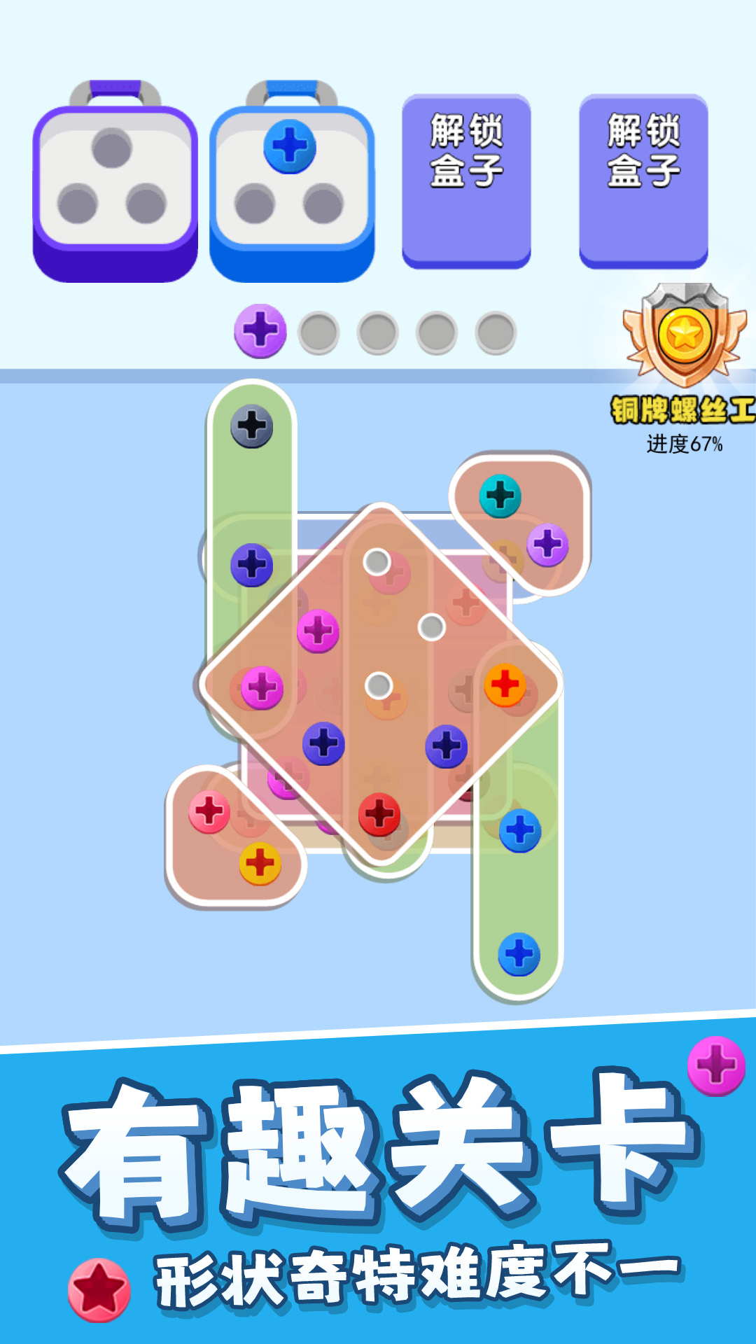 随着游戏的进行,您将逐渐提升技能,成为真正的螺丝拧紧大师。
