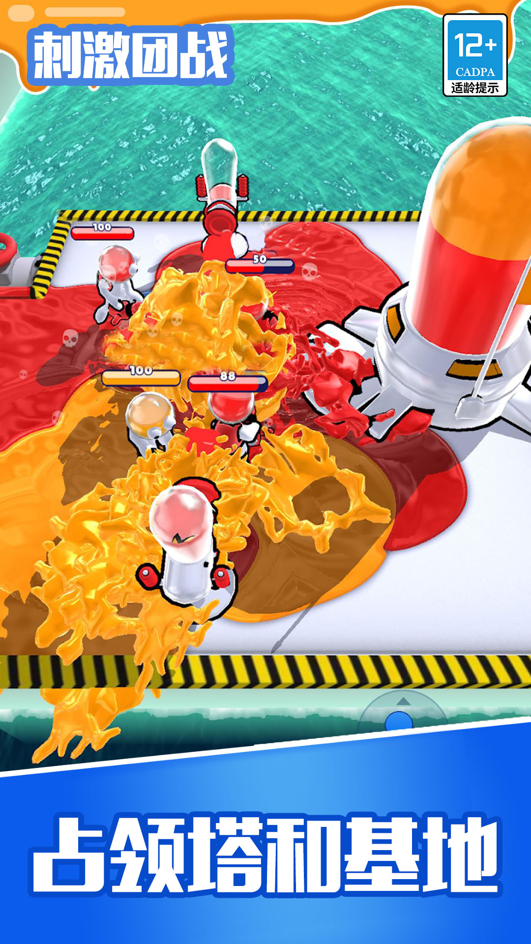 每一局,玩家的任务是和自己同颜色的队友一起,使用油漆枪淹没对手,借此占领对手的塔和基地。