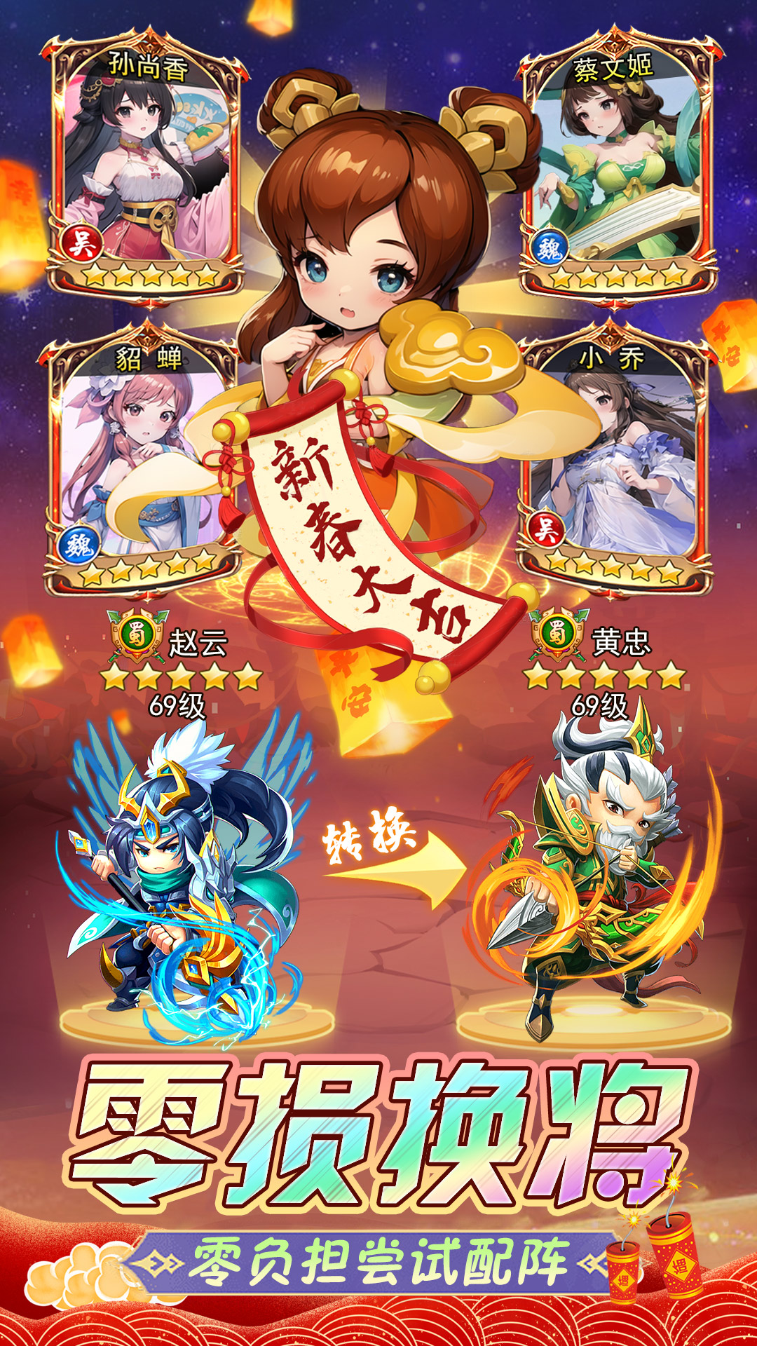 下载登录游戏可获得限时新手豪华礼包!上线就送VIP、海量资源和元宝、5星武将、7天送极品阵容!奖励狂送,开局就能乱杀,微氪首充即可直接起飞!