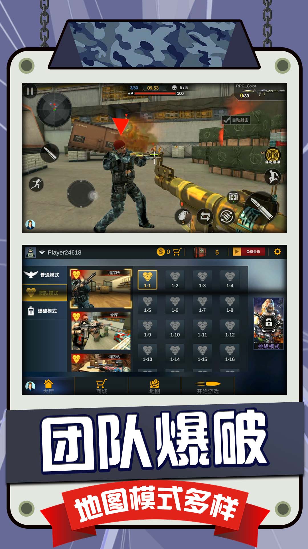 作为一个精英特警狙击手。你的任务是摧毁秘密基地的各种敌人。这是一款精彩的军事游戏。
