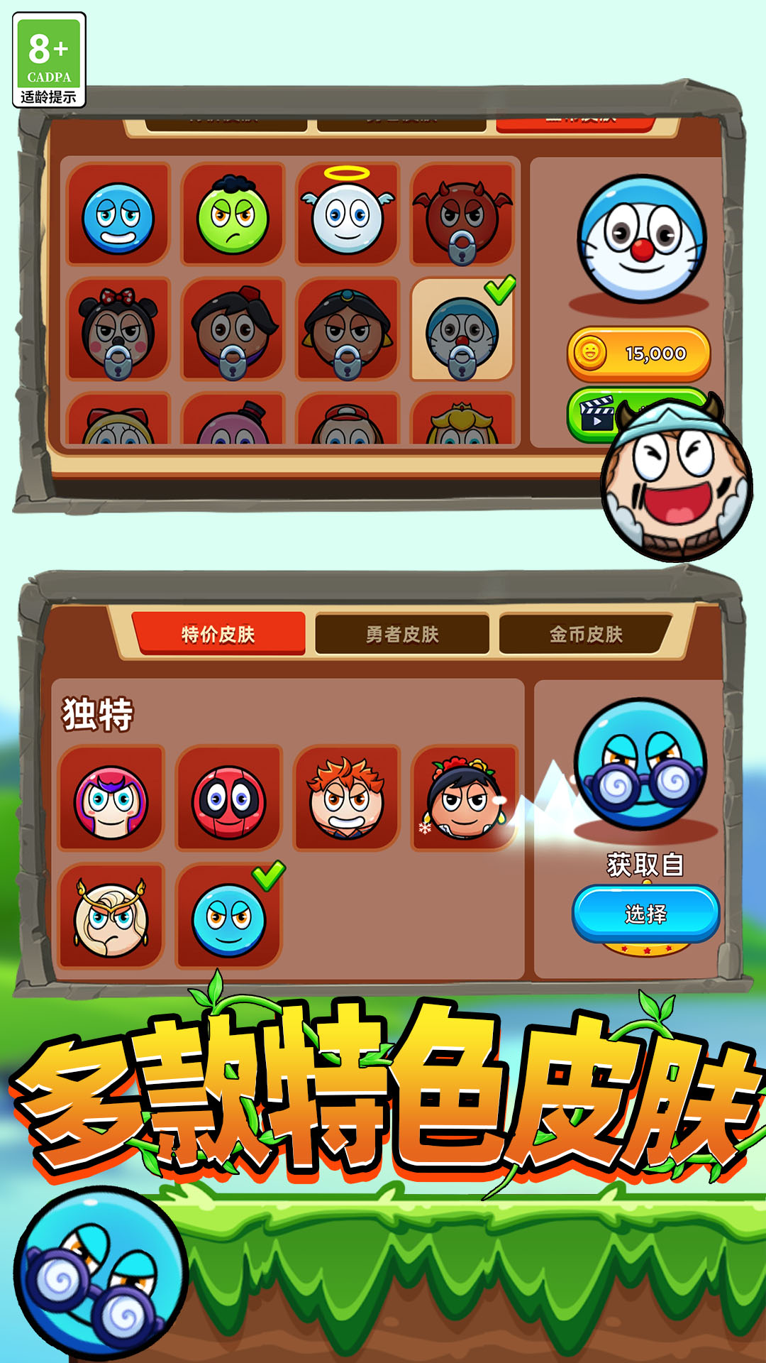 球球贼猛是一款精彩有趣的滚球闯关游戏,游戏拥有多样的关卡创意和与众不同的敌人怪物,玩家将扮演蓝色球英雄,击败敌人和首领,拯救滚球世界,过关会解锁超多皮肤,皮肤还有专属技能,一起来玩吧!