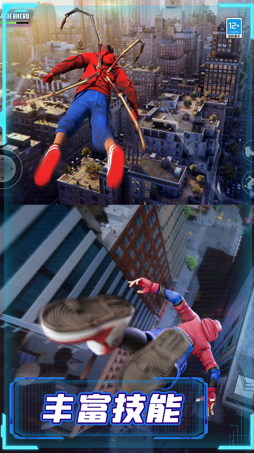 你将扮演一位英勇的蜘蛛超级英雄,保卫城市免受邪恶力量的侵袭。利用你的超能力和蜘蛛丝,穿梭于城市的楼宇间,追捕罪犯、解救无辜,完成各种任务。在紧张刺激的战斗中展现你的技能,击败各种怪兽和恶棍,成为城市的守护者!