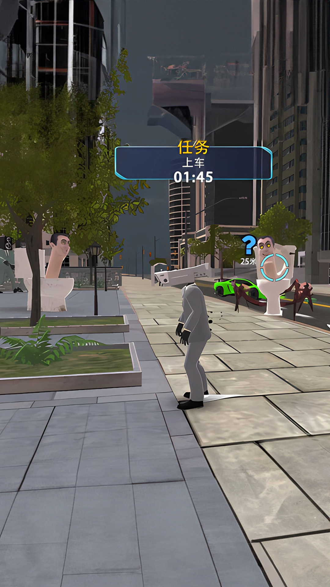 《城市冒险模拟器》这是一款动作冒险类游戏,在一张逼真的城市大地图中扮演超级英雄,你准备好了吗?在这个完全开放的世界里,玩家们可以在广阔的城市地图中自由的探索,去接取各种各样的任务,消灭敌人以此来守护城市的安全。您的任务就是消灭地图上所有的马桶人保护城市的安全。