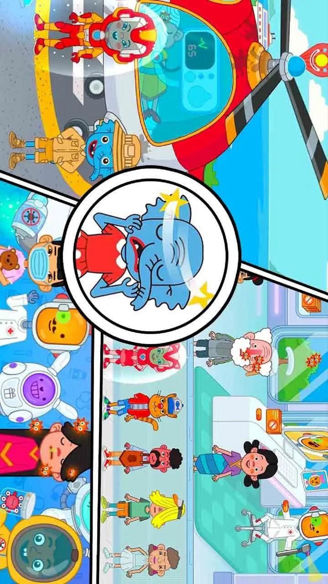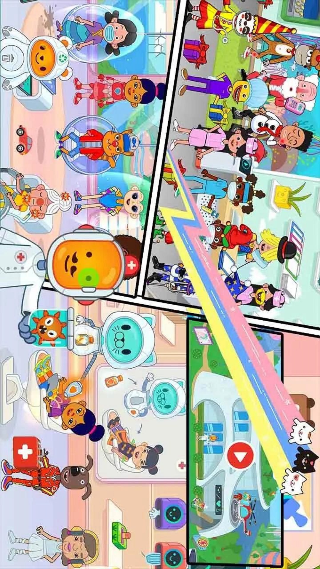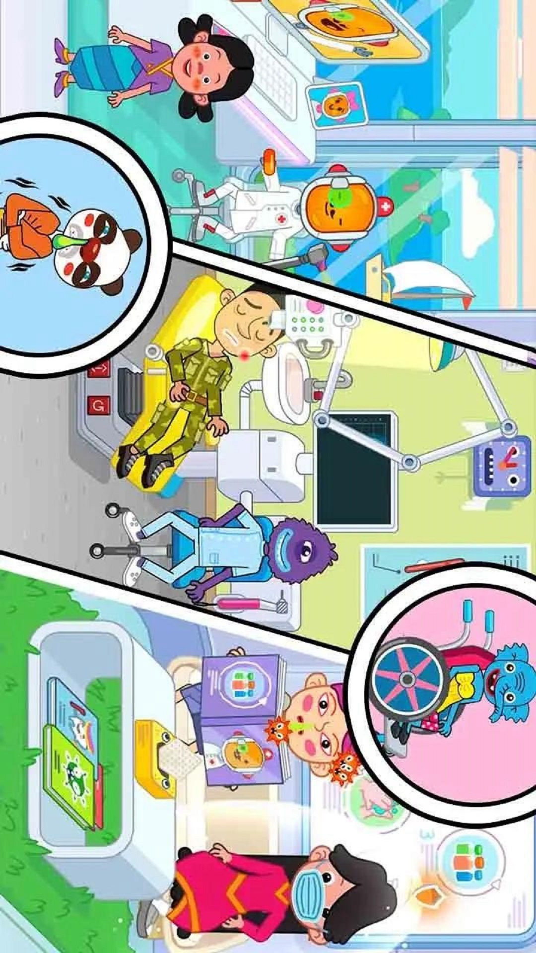 4、保持教育乐趣:游戏鼓励家庭游戏和协作,同时融入教育元素!与孩子们一起探索医疗中心令人兴奋的功能,引导他们的探索,并帮助他们学习有关疾病传播、疫苗和预防重要性的基本医学信息。同时,帮助他们开发关于各种角色的故事,解释不同医疗设备的用途,并扩大他们的词汇量。