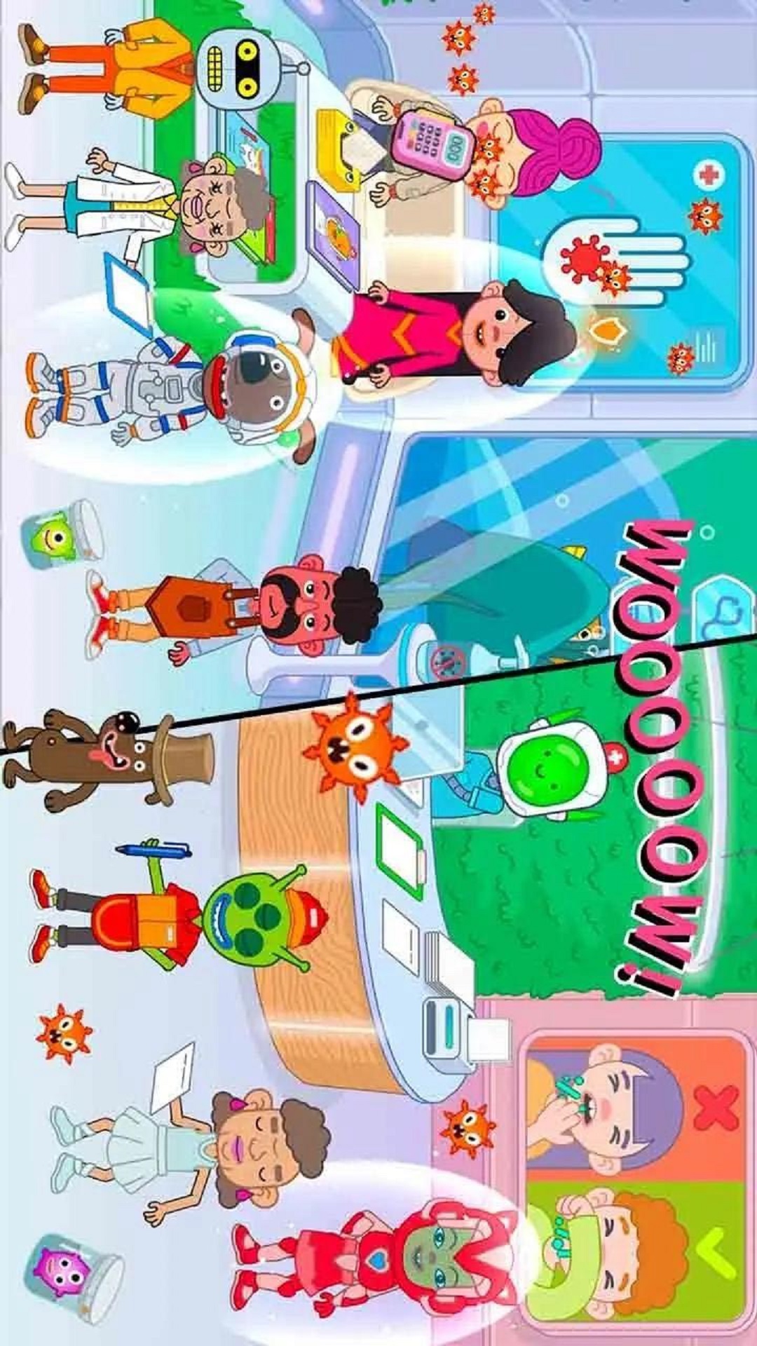 在米加小镇医院发现并探索现代医疗中心,并以医生、患者或科学家的身份创造自己的故事!通过独特的游戏玩法,以有趣和互动的方式学习如何使用疫苗、口罩和手部消毒来预防感染。