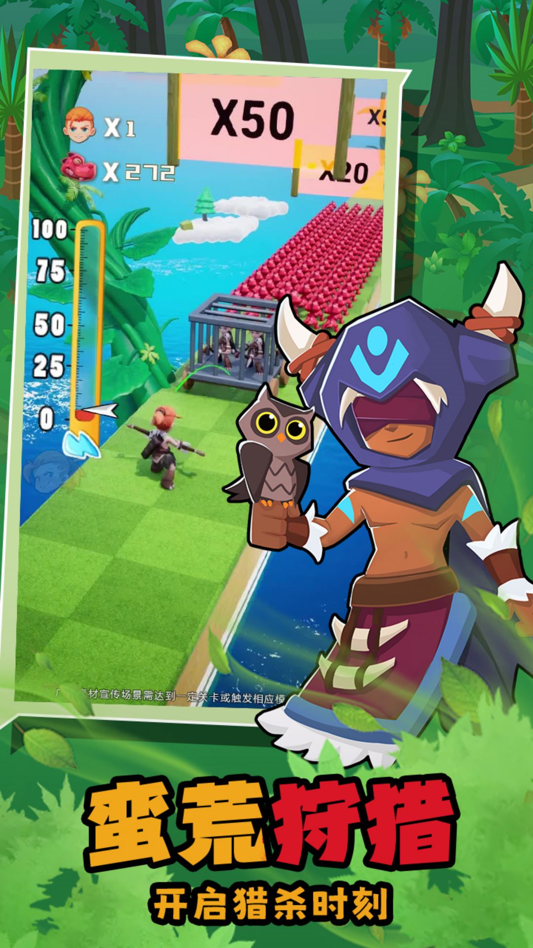 绿荫葱葱,万物复苏,这个盛夏,来《永恒部落》开启属于你的丛林冒险!在这里,你将成为1V100的存在,一人一箭勇闯关卡。关卡中你会遇到各种BOOS的袭击,飞天小鬼、隐身小怪、以及自带技能的大boos,要想成功过关斩将,需要凭借你过人的灵活走位、极限手速技巧,来打败各种怪物和boss,每过一个关卡都有额外奖励和特殊技能加持。勇士们!快来用你的计谋和走位,击败可恶的怪物,决一死战吧!我在勇者大陆等你!