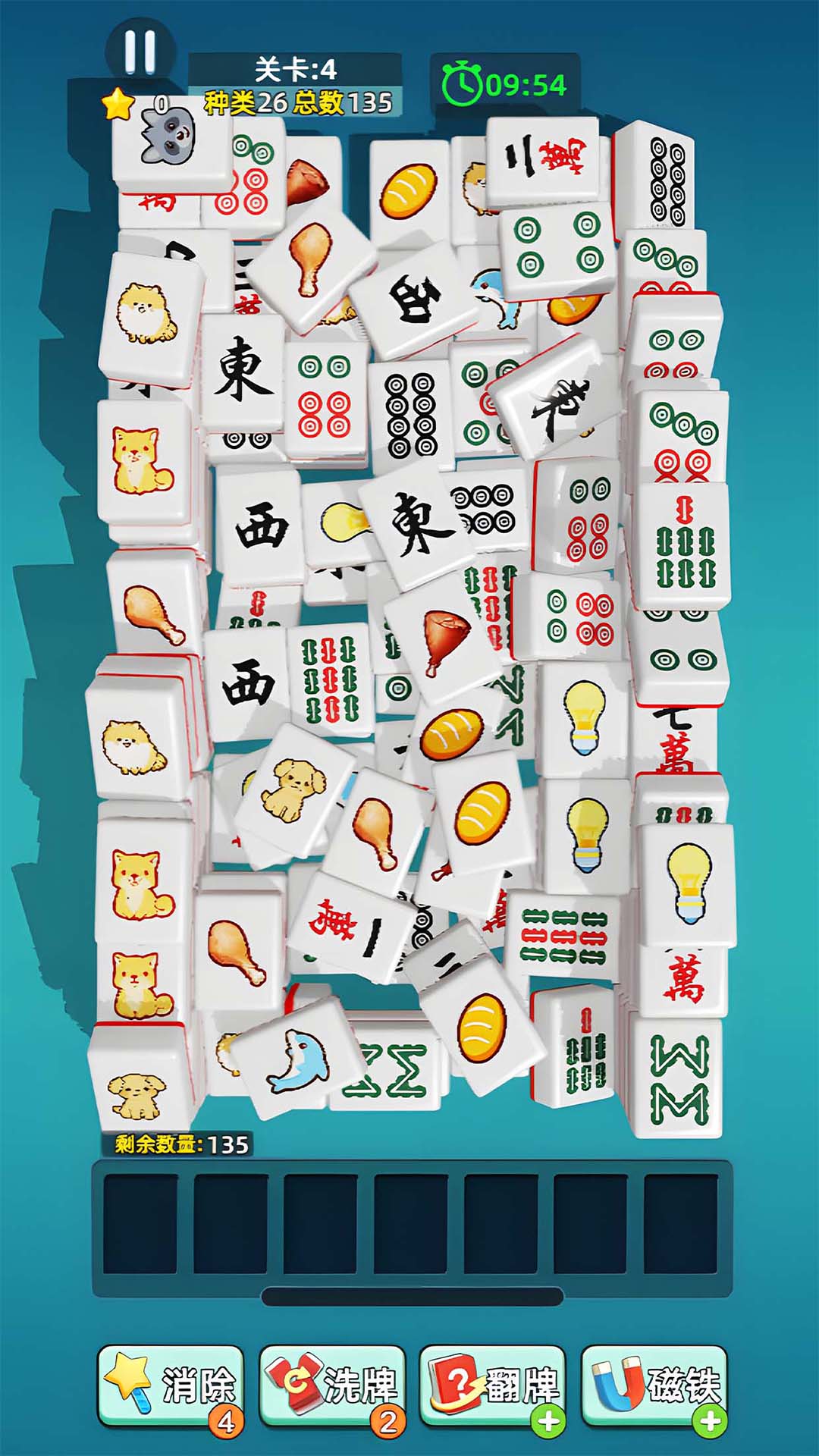 当消除完牌桌上的所有麻将方块,即可成功通关!当收集栏放满且无法再进行消除时,即为游戏失败。