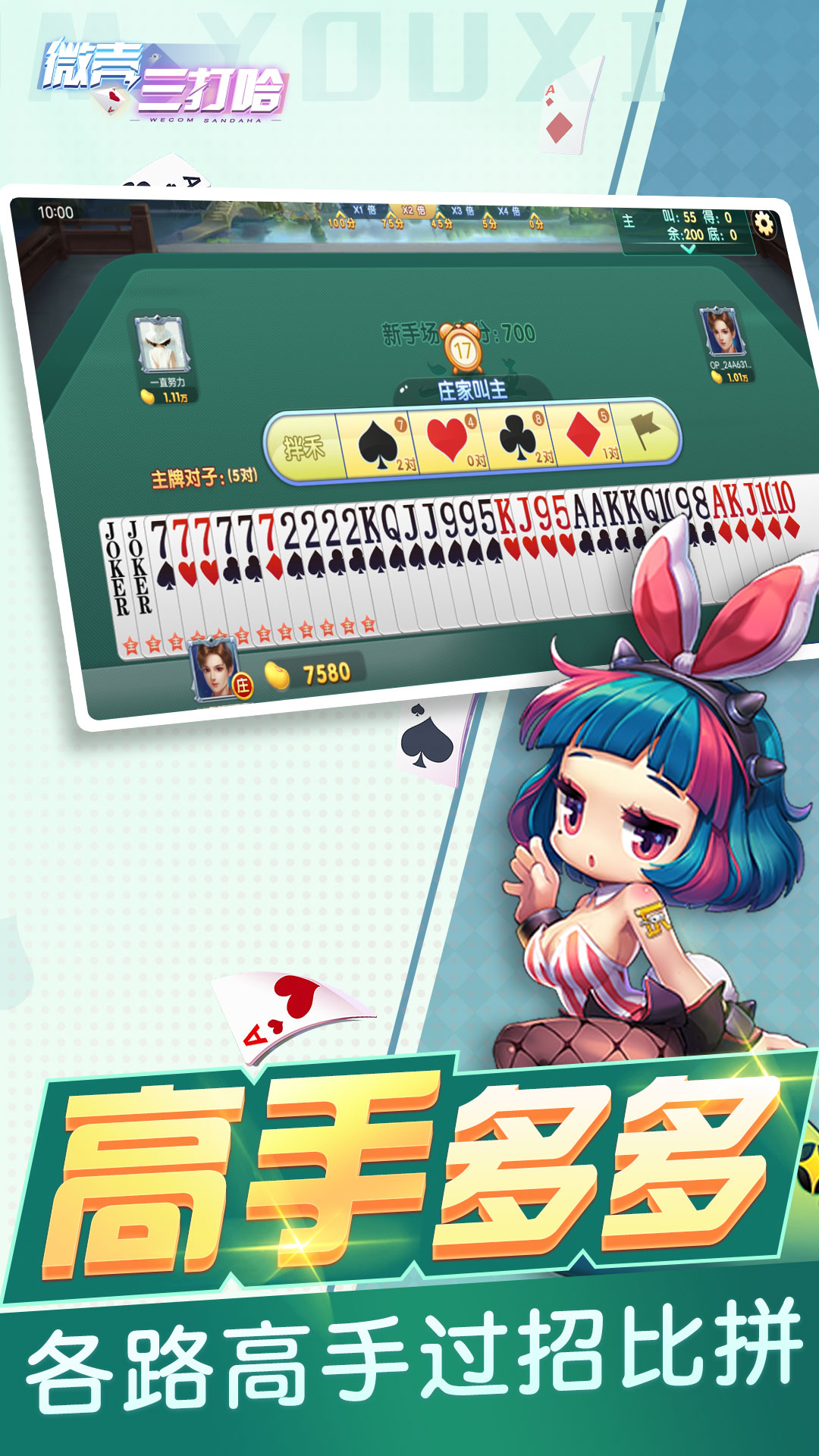 这款游戏融合了三打哈、二七王等扑克玩法,给您带来更丰富的游戏体验,让您在游戏过程中更加开心快乐。