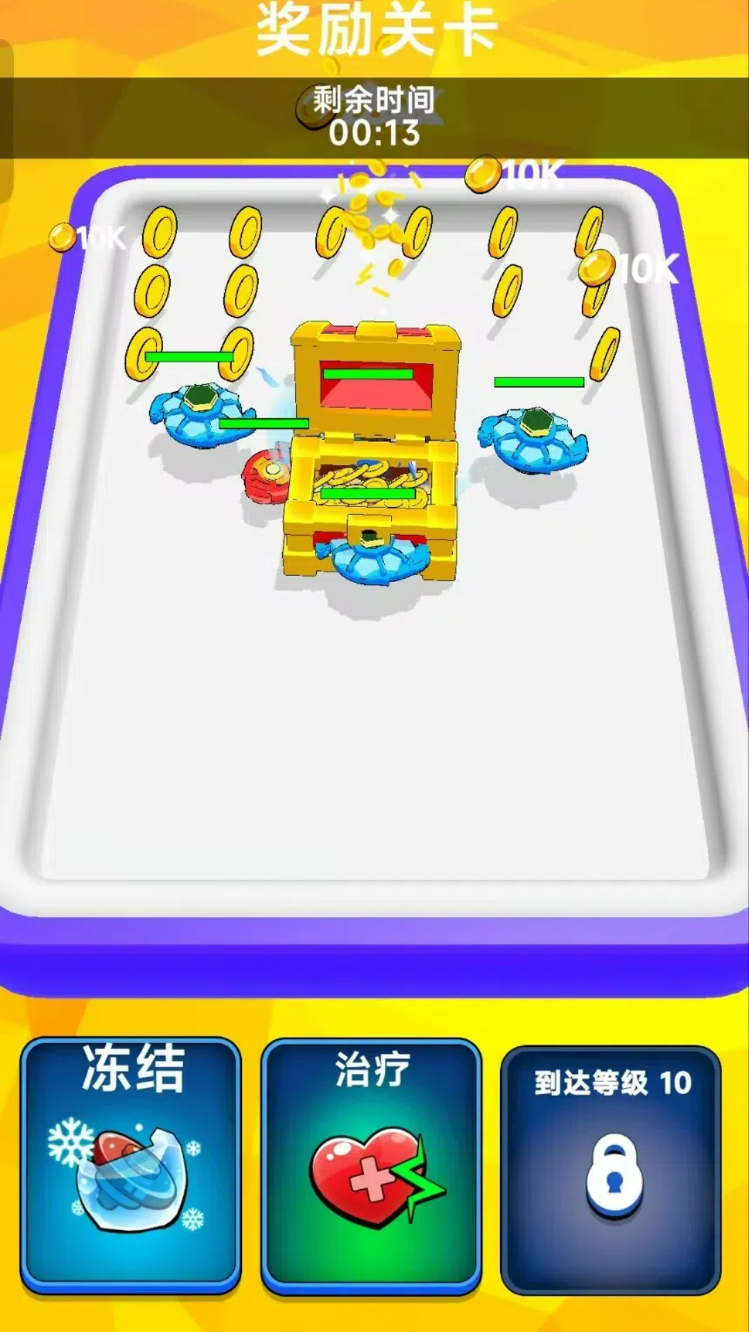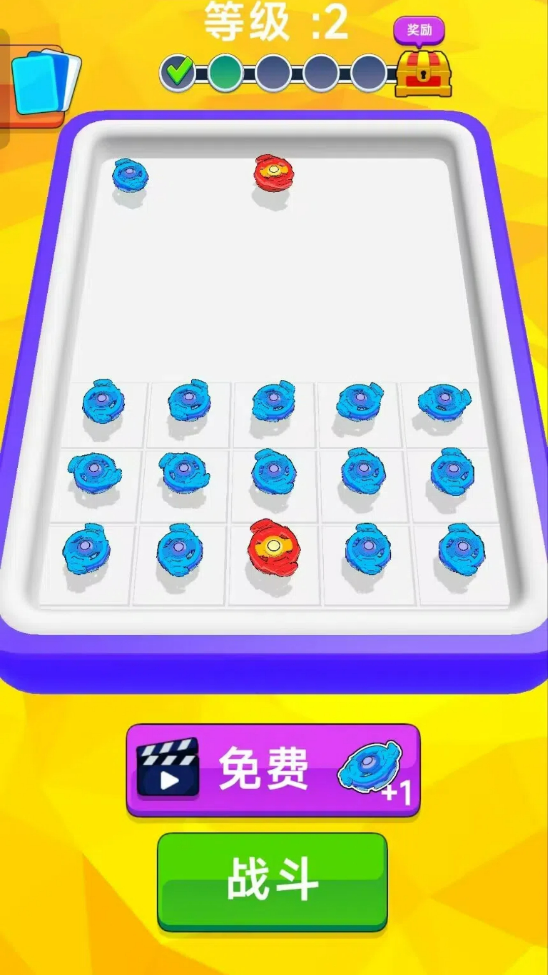 一款玩法轻松趣味的陀螺合并竞技对战玩法手游,在这款游戏中玩家将放置各类不同属性的陀螺,将相同陀螺合并到一起完成进化,不断与对手展开激烈对战,放置陀螺将对手撞出场外即可获得胜利。