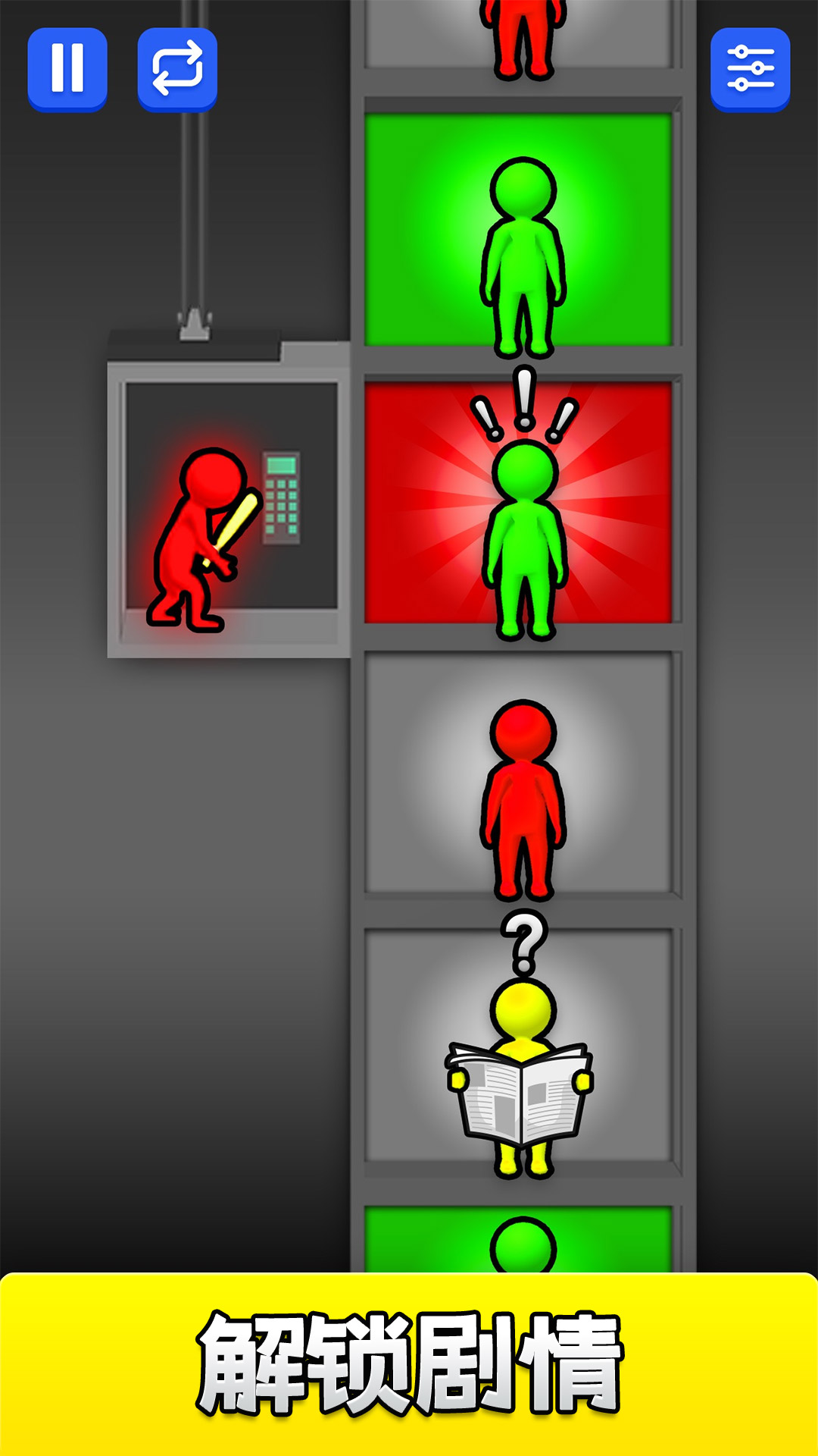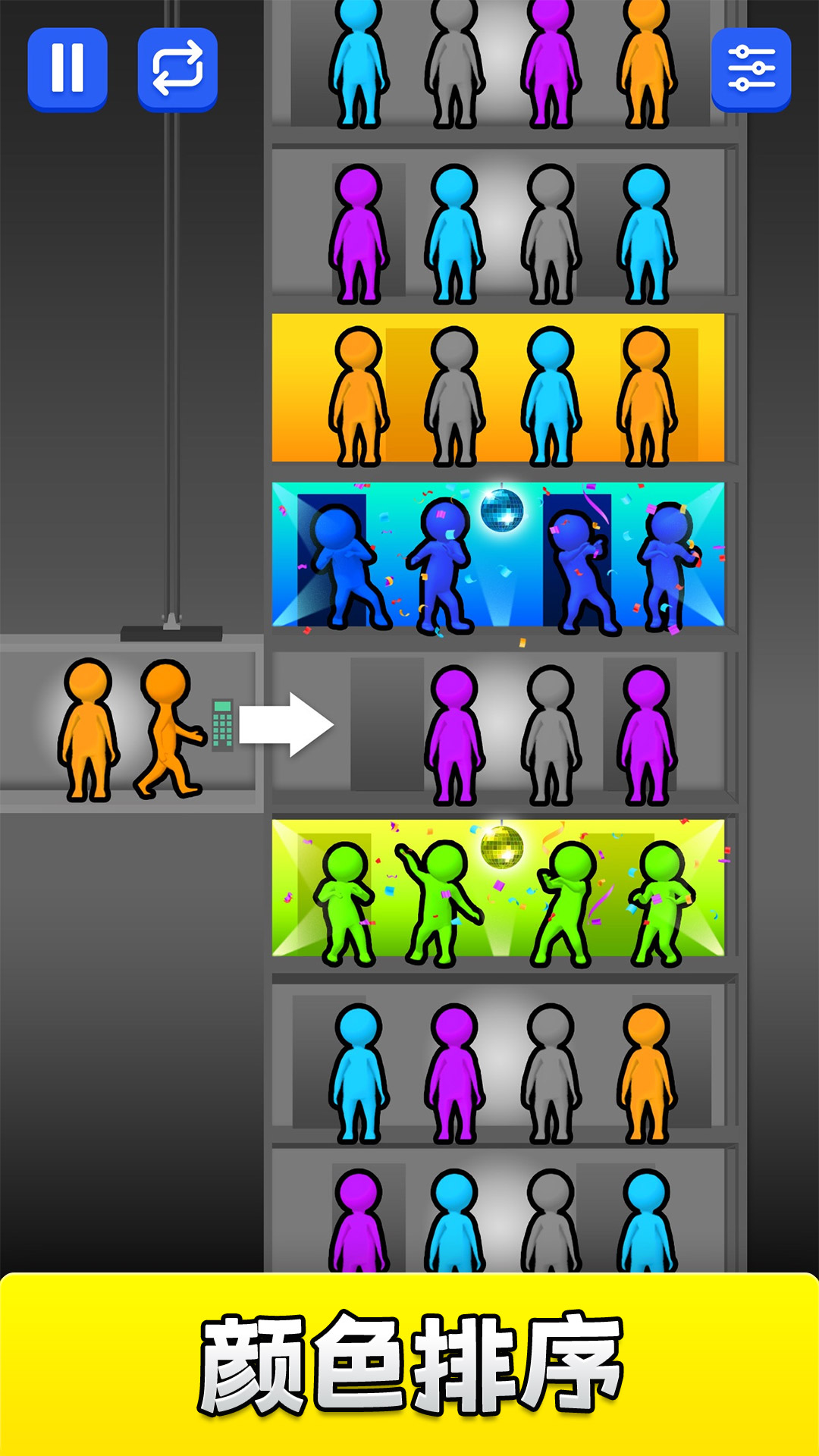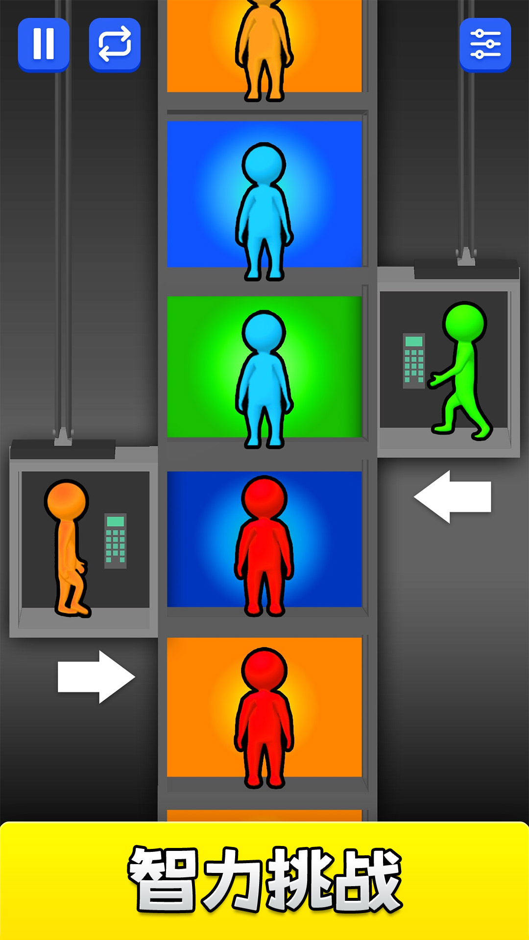 将人物转移到正确的楼层,你的目标是通过让不同颜色的人搭乘电梯,抵达正确的楼层,来匹配他们