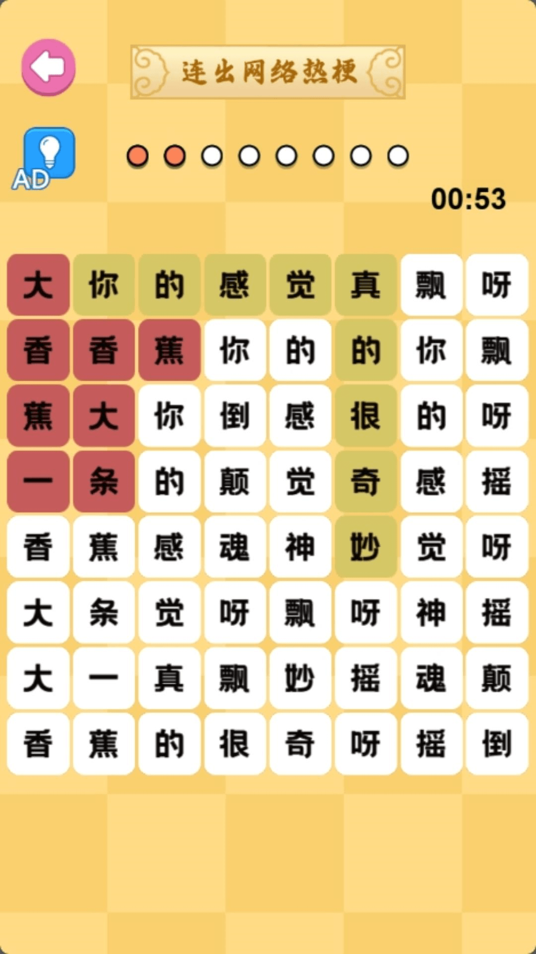 《大香蕉解压屋》这是一款休闲益智类小游戏,大香蕉文字连梗,你知道多少网络流行爆梗呢,将文字连接起来,一起挑战吧。