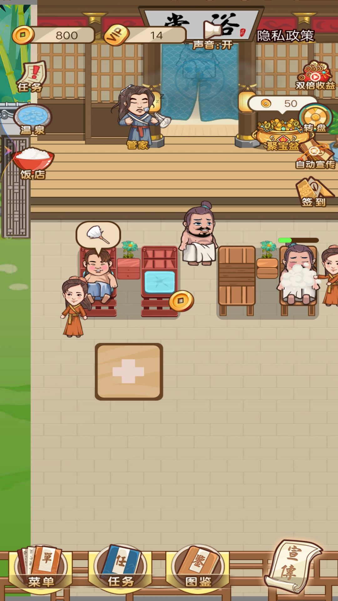 武林洗浴城是一款有趣并且魔性的小游戏,我们在游戏中将会投资洗浴店进行洗浴中心的建造,并且通过各种方式不断的扩建成为繁华的洗浴城。游戏内容很接地气,并且能够让玩家很好的了解洗浴店的运营规则,一定要秉承服务至上的理念哦,赶快来试试吧!