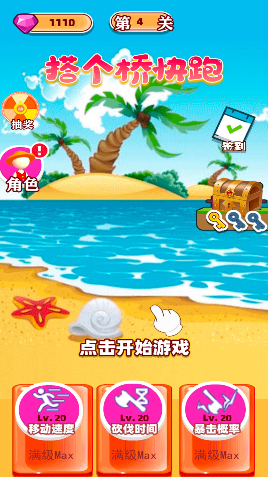 搭个桥快跑一款休闲动作竞速的游戏,游戏采用卡通风格设计而成,画面精美,背景色彩颜色清新,角色多变,玩法十分丰富,可以为玩家带来非常好的游戏体验感!游戏中玩家将会作为一个勇敢的冒险者在不带任何工具的情况下在一个无人的海岛之中展开求生冒险,我们需要用自己的双手采集各种物资,制作各种各样的工具,进行砍伐树木然后建造船只,先到达终点的就可以过关啦。整个游戏有着十分精彩的玩法,通过简略的手指点击办法就能够很好的操控,广阔的荒岛地图上蕴含了丰厚的资源,你有必要收集它们,并加以运用。除此之外,在黄岛中玩家们可以采取更多的行动,通过完成游戏中的各种冒险,更快速的抵达终点,十分简单轻松的游戏,玩起来也是很解压,大家可以随意的参与挑战。喜欢的玩家不妨下载体验一下试试看吧!