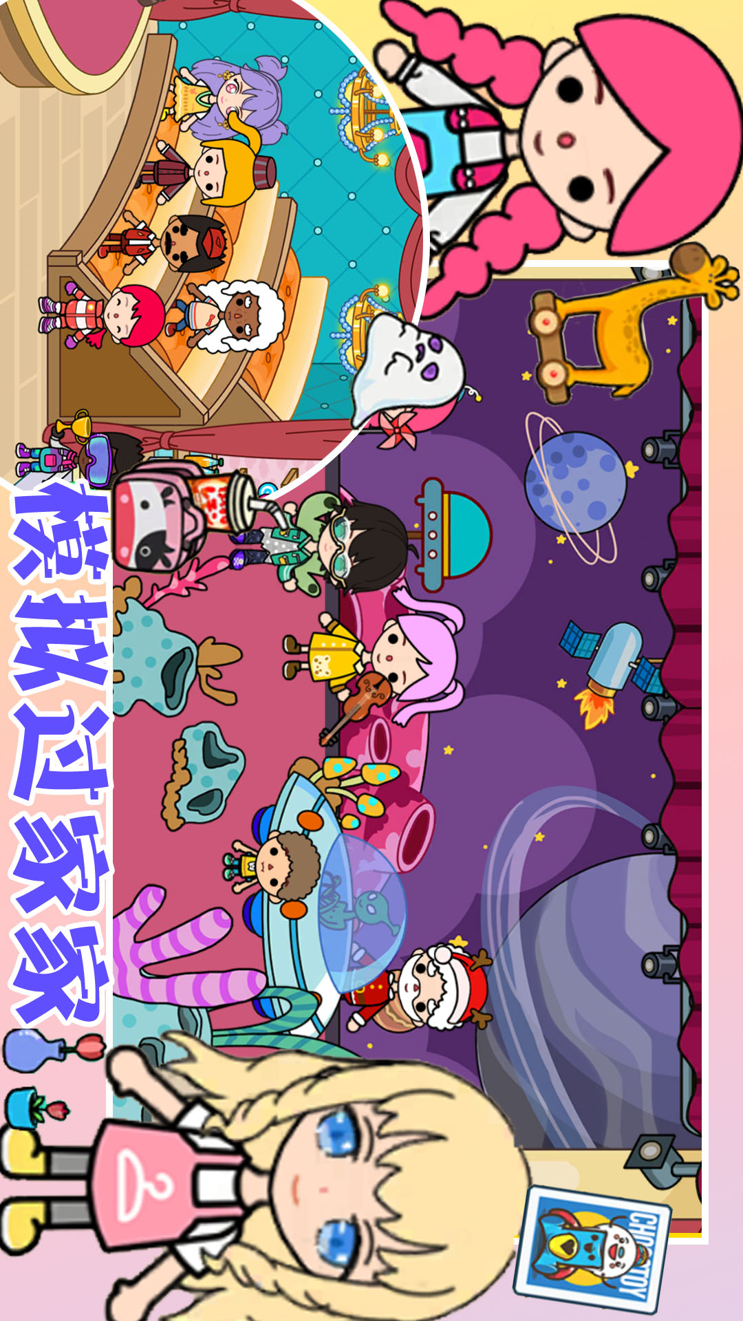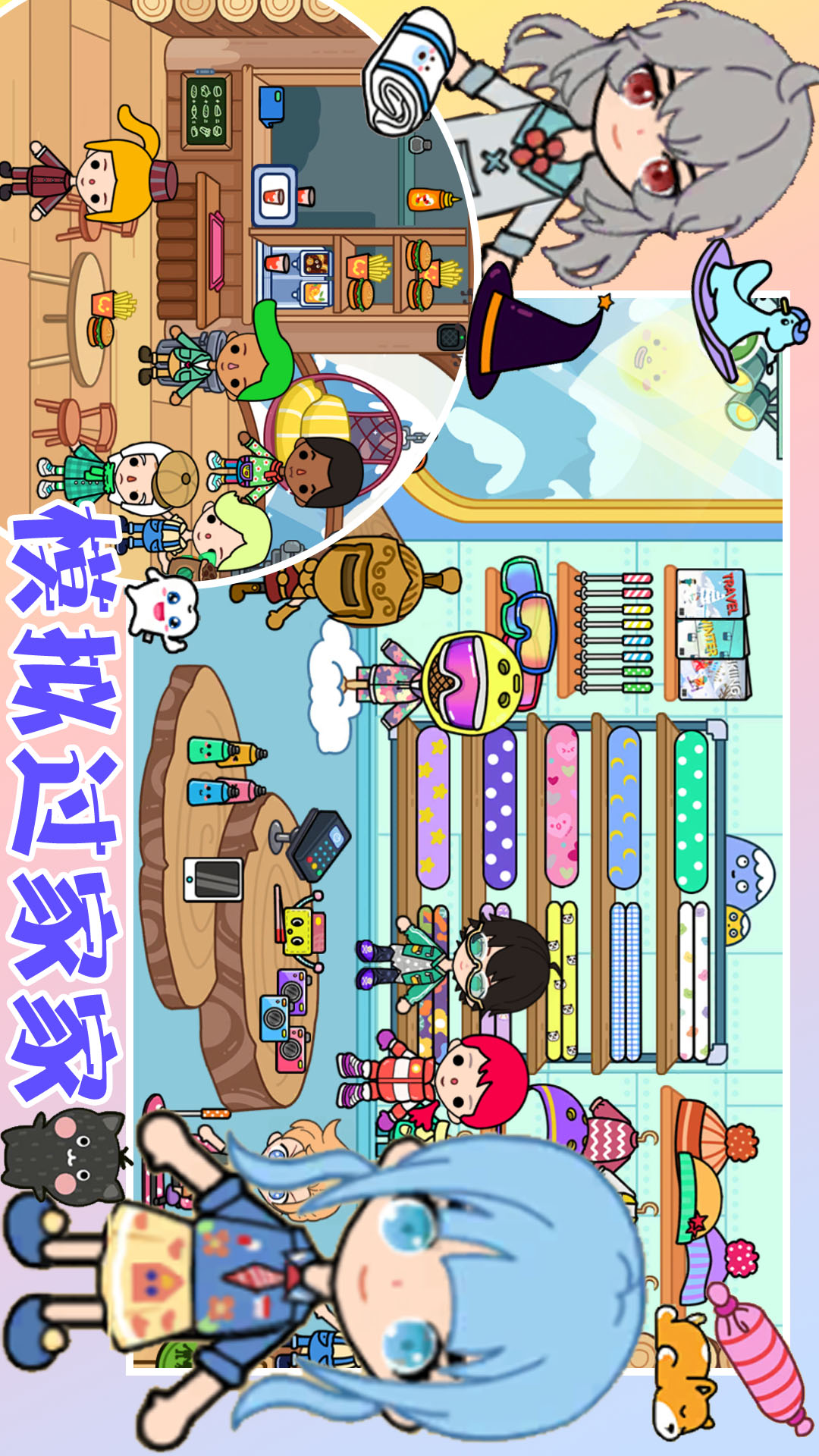 -百种场景:购物中心、游乐园、美装沙龙、家、度假区(海滩&小岛、观光区)、脱口秀现场、综艺演播厅等等......