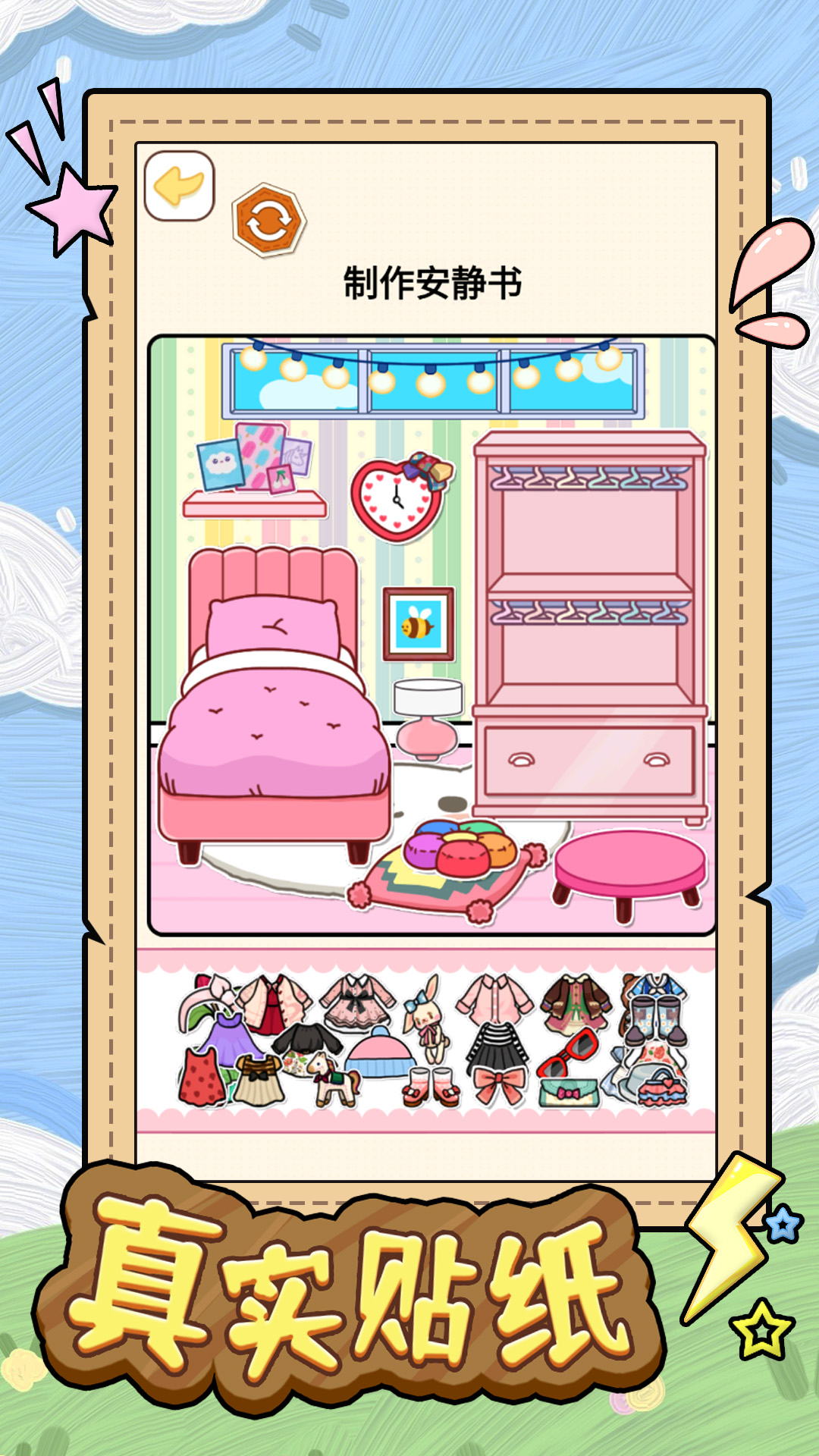 创意手工diy,发挥你的想象力,自由创作收集贴纸制作安静书。《安静书少女》是一款制作麻薯安静书手账贴纸自由DIY模拟小游戏,每个人都蕴含着一个少女的心,都想展现精致的一面给大家看,贴纸也不例外,玩家可以挑选各种好看的贴纸贴在自己的手账本上,喜欢的话就来试试看谁贴纸贴得更加精美吧!