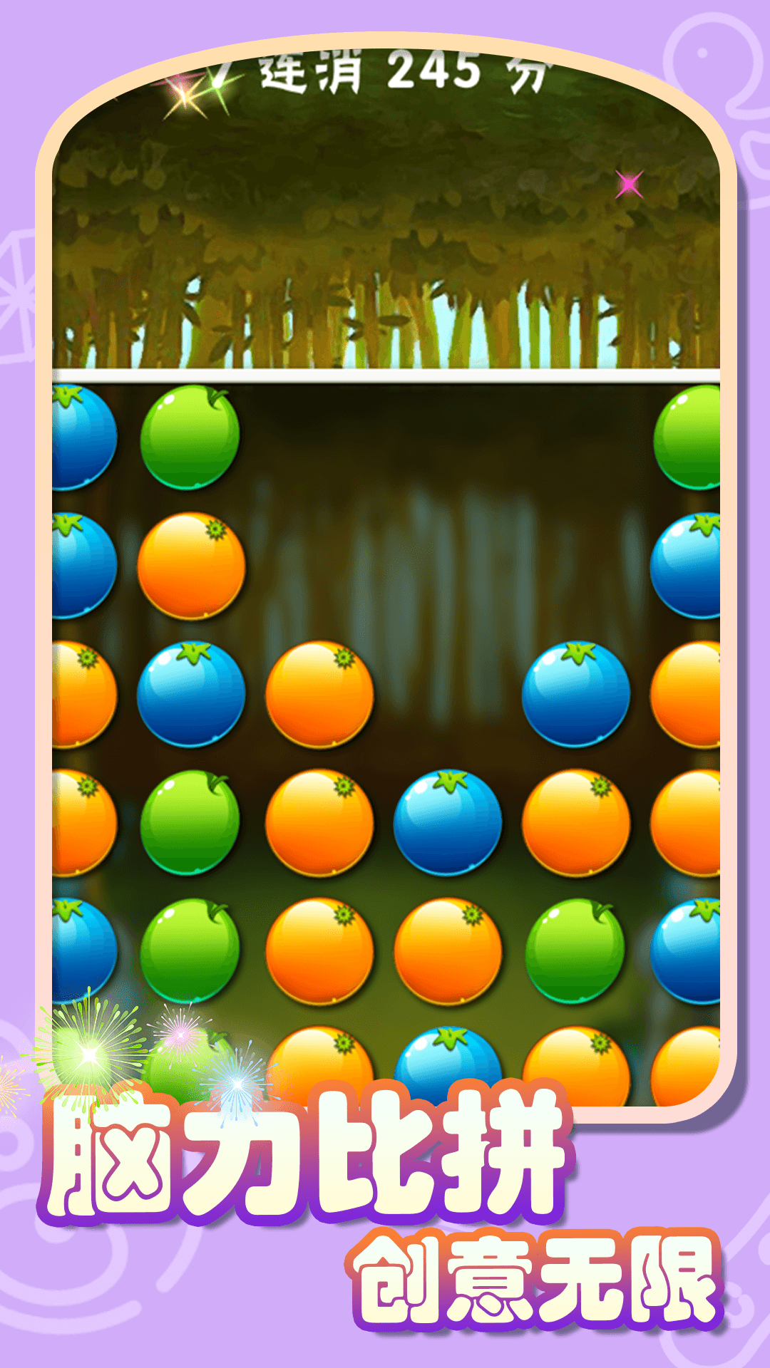 游戏玩法说明:玩家只需点击相邻的同颜色水果,即可一键爆破,消除水果并获得分数。游戏内设有多种不同的模式,包括经典模式、限时挑战等,让你可以根据自己的喜好选择。爆破的水果数量越多,你获得的分数也会随之增加挑战。