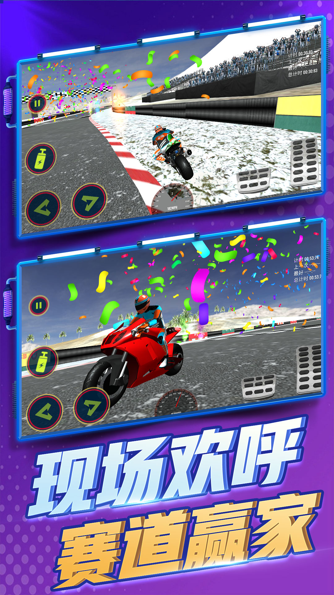 游戏内置超多摩托车供玩家选择,不同赛车性能属性各不相同,找寻与你最为契合的赛车伙伴吧,更有多种难度场地赛道进行飙车体验,西部大平原,凛冬雪原,山野丘陵,难度各异,体验迥然不同,快来驾驶你的飙车小摩托,和竞争对手们,来一场激烈的对决吧!