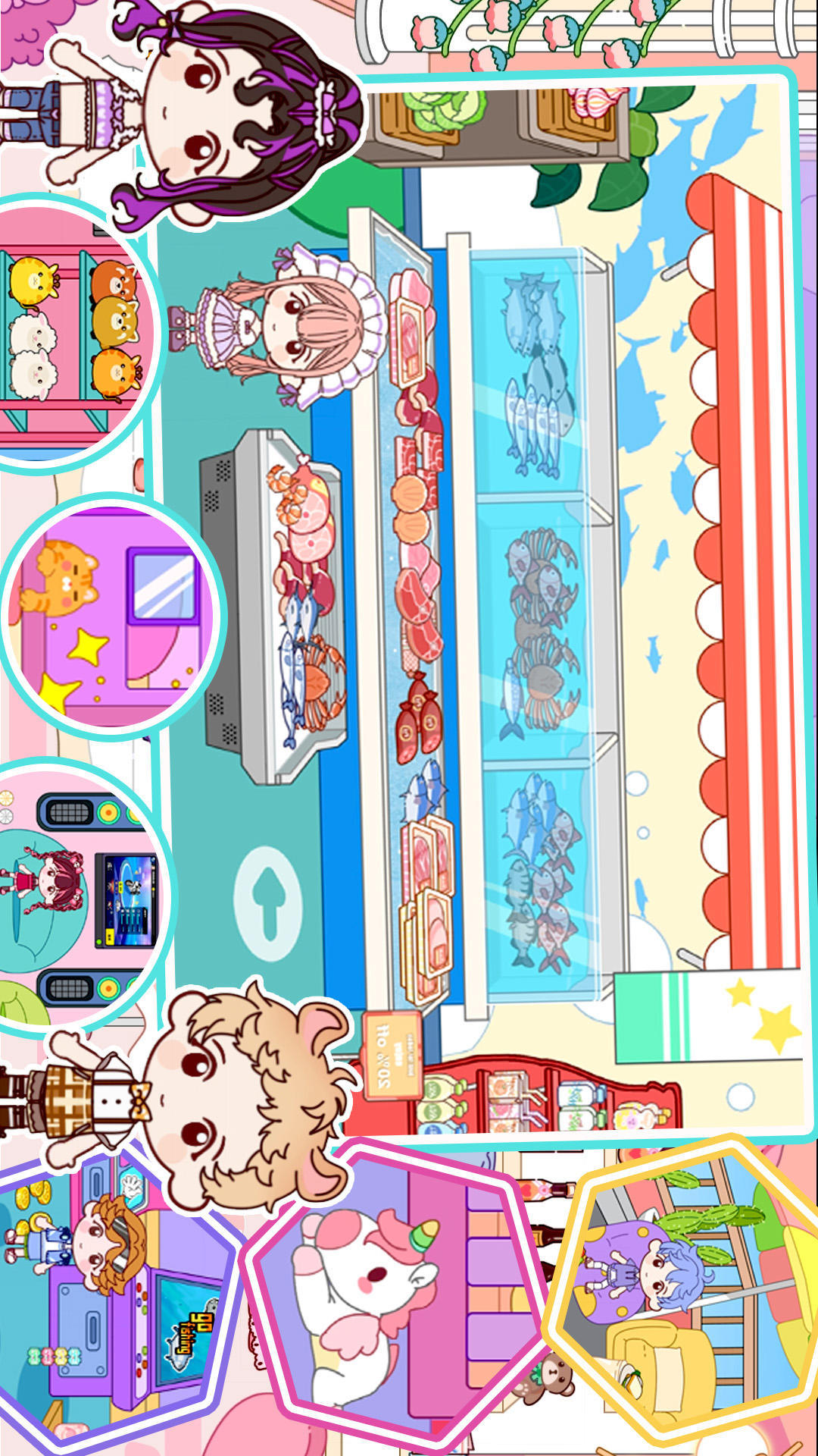 您可以去商场购物,去美食公园吃点东西,或者邀请朋友们来你的阁楼坐坐。角色们和他们的物品可以轻松在不同场所之间转移 美食广场有 8个不同的饮食摊点,可以吃一些寿司配汉堡,尝尝著名的鱼搭薯条 在商场购买衣服、厨具、宠物、玩具和食品杂货等都市生活等你来探索。